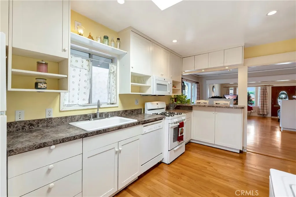 First time on the market in 50 years - historic wood shingled Craftsman Bungalow located on a prime large lot in Rose Park. This bungalow is walking distance to restaurants and shops along Retro Row, and just a ten minute walk to the beach. The large, front porch with 2 porch swings and the original oak, oval windowed front door welcomes you to the home. The open living room and dining room features rebuilt period bookcases and original oak hardwood floors in beautiful condition. These floors are throughout the bedrooms and hallway. There is an abundance of natural light from the original wood framed windows. There are also custom recessed lights throughout the living room and kitchen. The kitchen has been thoughtfully expanded with a high bar, white cabinetry, and laminate countertops. There is an abundance of storage space in the kitchen. An original wood cabinet with a desk space is currently located in the kitchen, but could be moved to another room. The kitchen appliances include a stove, fridge, microwave, washer and dryer. The kitchen door leads directly to the backyard and garage. There are 3 bedrooms total, with the back bedroom being a primary suite. The primary suite has recessed lights, ceiling fan, a regular closet, and 2 storage closets. There is a full bathroom with a white subway tiled bath and shower, and pedestal sink. The front bedroom gets beautiful natural light through the original wood framed windows. The 3rd bedroom is off of the hallway in the middle of the house. There is a bathroom located in the hallway, which has a large shower and a skylight.
