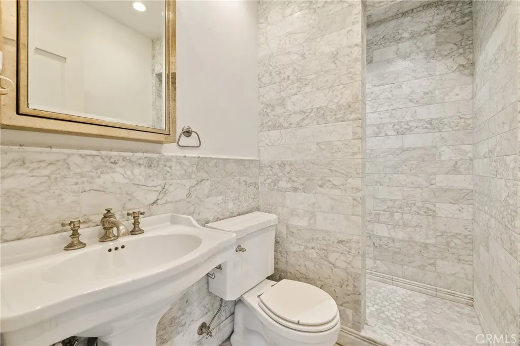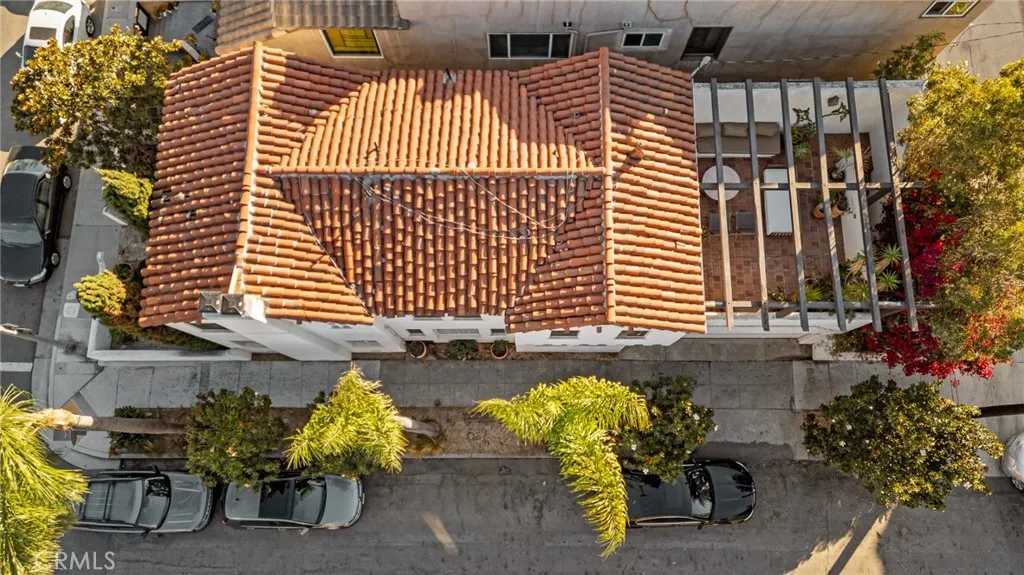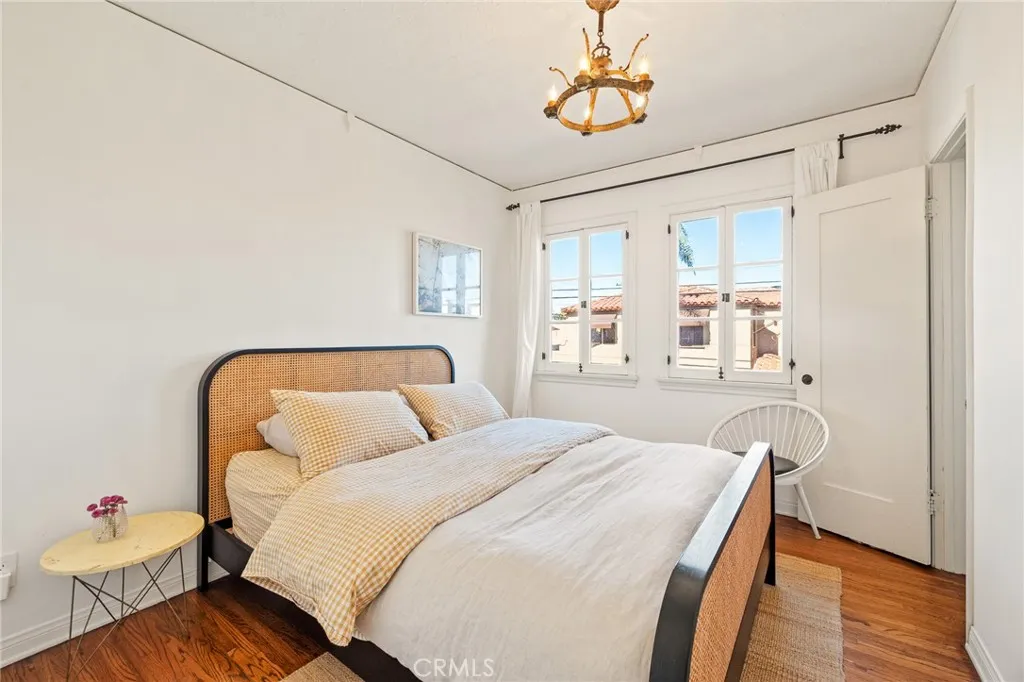Character, charm, coastline. Just steps from the sand and the heart of Belmont Shore, this Spanish-style sanctuary delivers the quintessential Southern California dream. This timeless home will enchant you at first glance with its white stucco facade, terracotta roof, corner lot, and private walled courtyard filled with succulents and Mediterranean landscaping. Enter a sunlit living room where hand-painted wooden ceiling beams rise overhead and an arched picture window floods the space with natural light. Historic architectural details blend seamlessly with modern luxury. The remodeled gourmet kitchen is a chef's delight, featuring marble countertops, a Bertazzoni induction range, a brand-new refrigerator, and custom cabinetry. An original wrought-iron railing leads to the second level, where spacious, light-filled bedrooms await. The primary suite offers a peaceful retreat with its classic corner fireplace, gleaming hardwood floors, and windows that capture the coastal glow. A second gas fireplace anchors the main living space. Both chimneys have been recently serviced and restored for efficiency. Vintage charm meets modern refinement in the stylishly updated bathrooms, featuring pedestal sinks, classic subway tile, and elegant marble herringbone floors that honor the home's 1920s heritage. Beyond its timeless appeal, this home has been thoughtfully upgraded with a seismically retrofitted foundation, professionally bolted and braced to current standards, providing both peace of mind and lasting structural integrity. The crown jewel? An expansive rooftop deck with Spanish t