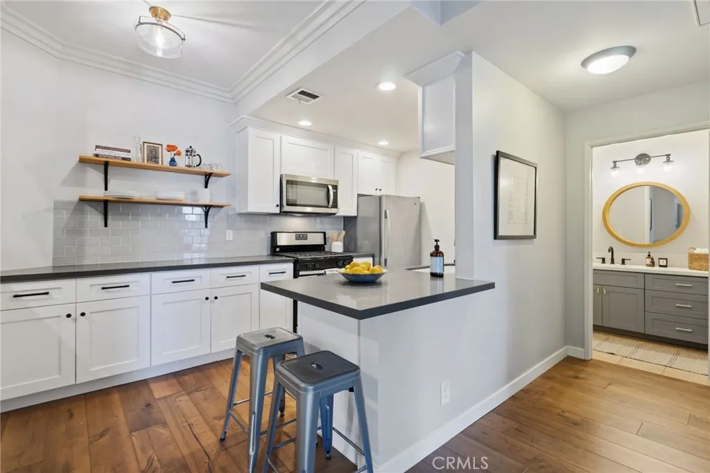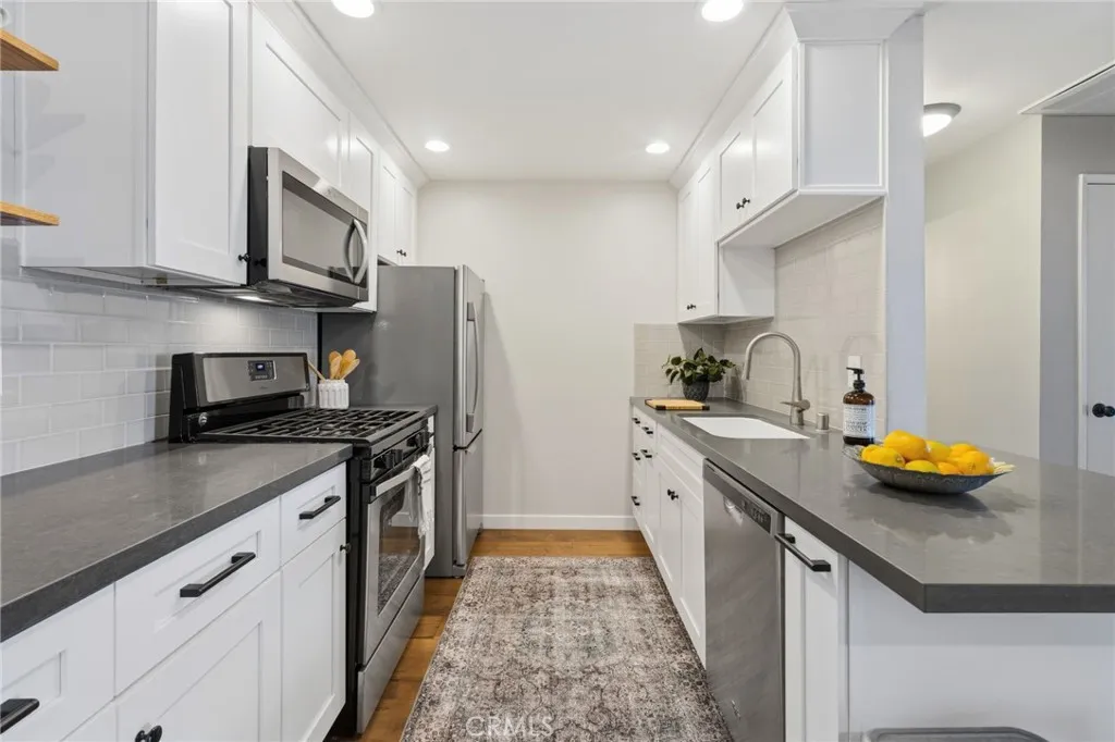 Rare top-floor, corner unit with no shared walls on one side in a well-maintained complex just blocks from the Expo Line, restaurants, the farmers market, and a short walk to downtown Culver City, including Sony Pictures, Amazon Studios, and Apple. Fully remodeled with quality finishes throughout, this light-filled condo features high ceilings and hardwood floors. The open kitchen is both functional and polished, with updated cabinetry, quartz countertops, stainless steel appliances, and recessed lighting. Two spacious bedroom suites are thoughtfully separated for privacy, each featuring new carpet, a walk-in closet, an updated bathroom, and direct balcony access. Additional features include central AC and heat, dual-pane windows, an in-unit washer and dryer, and two tandem parking spaces. Community amenities include a gym, pool, and gated garage with guest parking. HOA covers water and earthquake insurance.