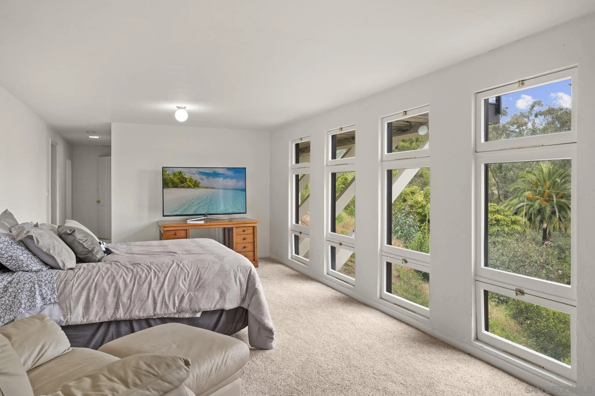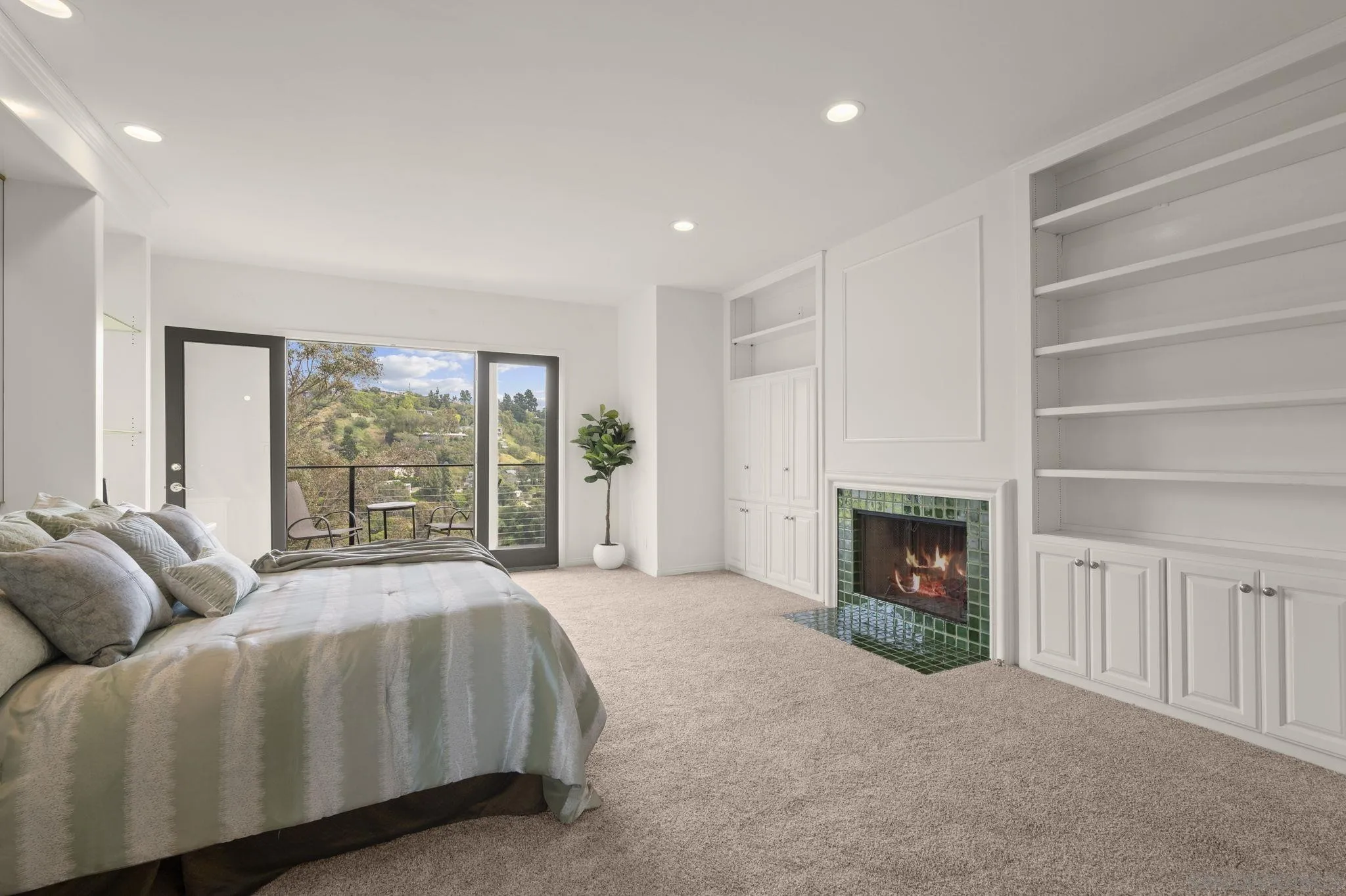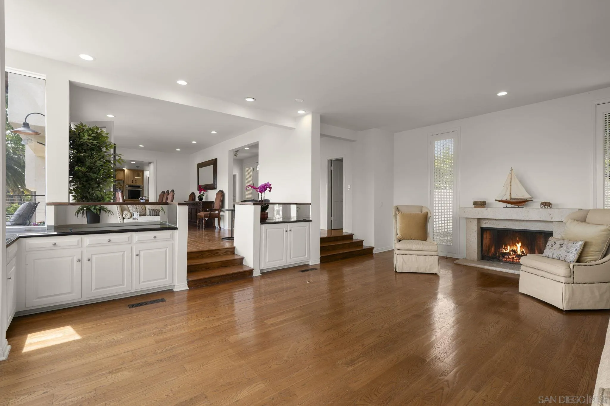 Discover a rare three-level Crestwood Hills residence within walking distance of Crestwood Park and Kenter Canyon School. A grand foyer leads to an elegant living area with sweeping, unobstructed canyon and city views from the interior through to the fully-refurbished decks. A dramatic high-ceiling living room—once host to recitals—features a fireplace, wet bar, and space for a grand piano. The dining area flows to a sunny kitchen with breakfast nook and outdoor dining. Upstairs, a generous landing connects three ensuite bedrooms to a large outdoor porch with beautiful canyon and peek ocean views. The primary suite hosts dual walk-ins, a fireplace, and private deck. The lower level offers a fourth ensuite bedroom, media/gym, and walk-in storage. The lovely home accommodates effortless entertaining with six off-street parallel spaces and 161 feet of level frontage parking. Schedule a private viewing to experience the views and possibilities firsthand.
