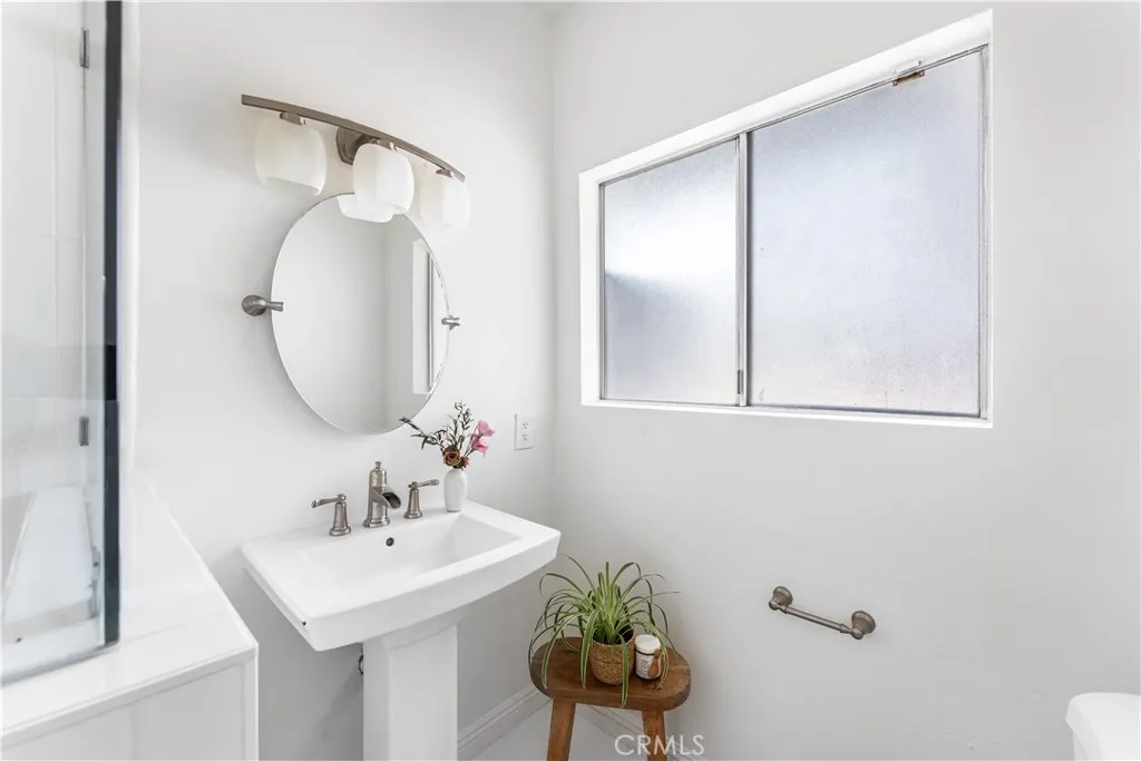 This isn't your typical Boyle Heights home. Set in the heart of Boyle Heights, this light-filled 3-bedroom home blends vintage character with thoughtful updates and a warm, welcoming spirit. Behind a gated front yard framed by lush greenery, the home opens to a bright, open concept living space with soaring 9' ceilings and original charm intact. Through the wooden front door with amber stained glass, youre greeted by a spacious living room drenched in natural light from four windows, including a picture window overlooking a plant filled front porch. Adjacent to the living area, a sunroom with a large window offers flexible use as a den, office, or guest space, perfect for working from home or hosting friends. The freshly remodeled bathroom features a new shower with sparkling white tile and chrome accents, and new tile floors creating a spa-like retreat filled with soft, natural light. The kitchen has been updated with new recessed lighting and easy access to a generous laundry room that connects to the backyard. Each bedroom feels airy and bright, with the primary bedroom opening directly to the garden, a peaceful spot to enjoy morning coffee among the fig and bougainvillea. Outdoors, the large, level backyard is a private sanctuary framed by mature fruit trees, roses, and vibrant blooms. The detached garage, formerly an artists studio, offers endless possibilities as a creative workspace, home office, or guest retreat. Ideally located minutes from Downtown LA and the Arts District, this Boyle Heights gem offers the perfect balance of privacy, light, and urban convenience.