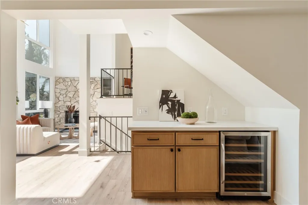Stunning Multi-Level Home with Designer Touches and Private Outdoor Retreats Welcome to this beautifully updated multi-level residence, where modern upgrades meet timeless charm. Featuring new HVAC, new gas water heater, and new appliances, this home is move-in ready with comfort and style in every corner. Enjoy serene privacy and shade from mature trees and lush hedges, while multiple outdoor spacesincluding a bonus covered front balcony perfect for morning coffeeoffer peaceful retreats. A custom spiral staircase connects the upper deck to the bottom patio, adding architectural flair and convenience. Inside, you'll find a spacious, light-filled layout with large windows spanning a two-story open living space, recessed lighting throughout, and elegant finishes like white oak cabinetry, quartz countertops, and LVP flooring. The chefs kitchen boasts a wine fridge, bar area, and a generous kitchen and dining space ideal for entertaining. The bottom level features a luxurious primary en suite with a stone fireplace, walk-in closet, and direct access to the backyard and porch. The second story hosts the main living, dining, and kitchen areas, along with a balcony/porch and the spiral staircase leading down. On the third story, you'll find two additional bedrooms, an enclosed laundry roomfor side-by-side washer/dryer, and a private front patio. Located in the vibrant Sawtelle neighborhood, this home offers easy access to exceptional dining and shopping in West LA, Brentwood, and Santa Monica. Quick freeway access to the 10 and 405 and minutes from LAs beach communities. This prop
