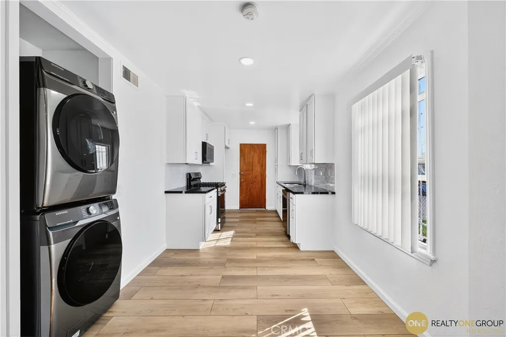 "Welcome to this charming home full of character," where original hardwood floors meet modern updates. The kitchen and bathroom have been fully renovated, with the kitchen featuring brand new stainless steel appliances- Washer and dryer, dishwasher and stove - all complemented by sleek quartz countertops. The bathroom has been fully gutted, featuring brand new tile, floor, sink and tub. The home is also complemented by an energy-efficient tankless water heater to keep your water warm, also this home has double paned windows, which helps keep the interior quiet and comfortable by reducing outside noise and improving energy efficiency. "Plus, this home is conveniently located near grocery stores, with easy access to freeways and other local amenities making it as convenient as it is charming."