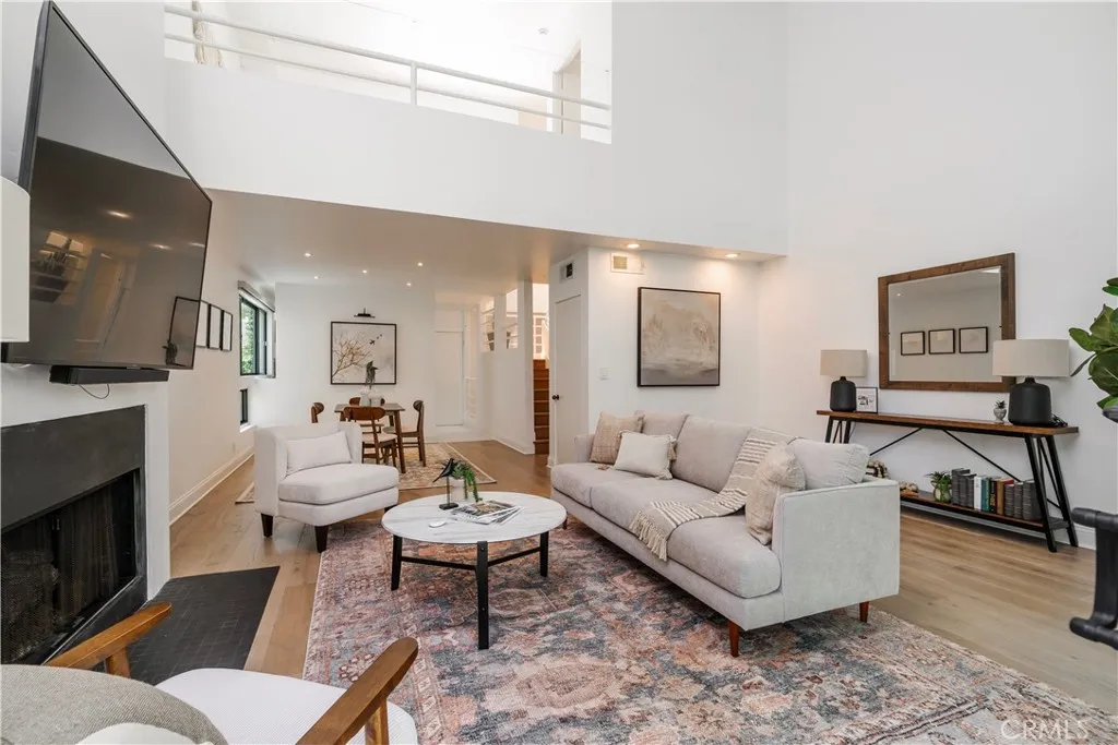 Wow! Finally! A rare opportunity to have it all! Architectural elegance meets modern luxury in this stunning townhome-style condo, designed by renowned architect William Hefner, AIA. Every detail of this residence has been thoughtfully curated, from the rich wood flooring throughout to the soaring ceilings and perfectly aligned balcony doors and windows that flood the space with natural light and offer serene tree-lined views, providing the ultimate in living area. The expansive primary suite is a true retreat, complete with a cozy fireplace and a luxurious en-suite bath featuring a soaking tubideal for relaxation or a refreshing cold plungealong with a separate shower and double vanity. The second bedroom is perfectly suited for a nursery, guest room, or home office. The updated kitchen is both stylish and functional, and comes equipped with a refrigerator. Upstairs, a spacious third-level loft with its own bath opens to a private rooftop patioperfect for a home office, morning yoga, or hosting friends under the stars. Beyond the beautiful interior and flexible floor plan, this Westwood homes location is ideally nestled at the end of a cul-de-sac and is within the highly rated Fairburn elementary school boundaries. Youre blocks from Trader Joes, Whole Foods, coffee shops and boutique shopping, dining in the Westwood Village and renown Sawtelle blvd. Additional highlights include end unit, no one above and no one below, central A/C, in-unit laundry, two-car parking with an EV charger and a stand alone storage area. A rare opportunity not to be missedwhere architectural pedi