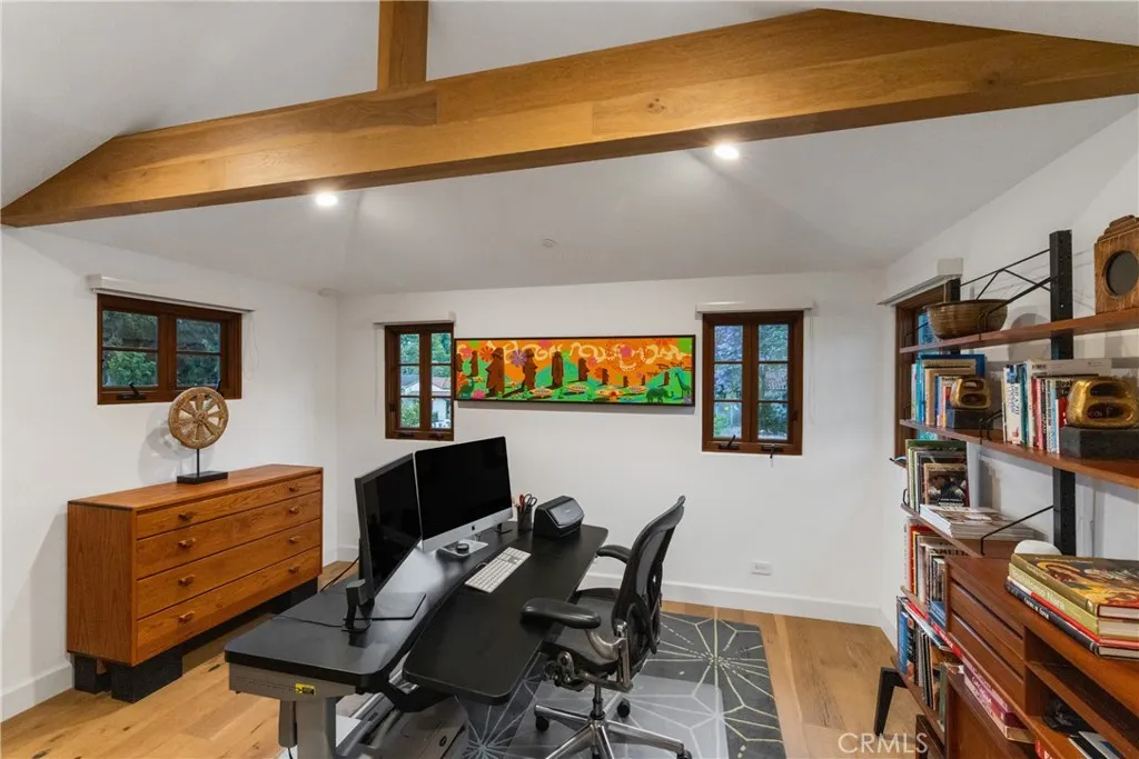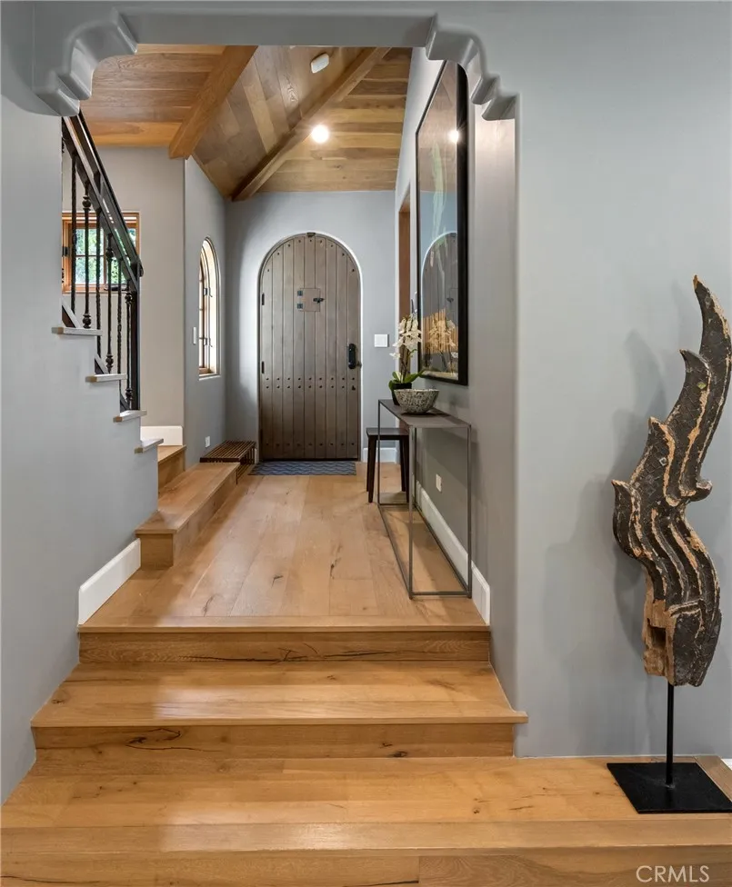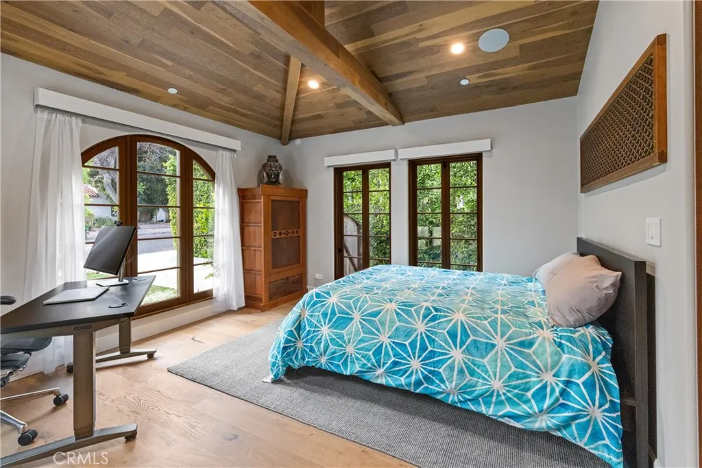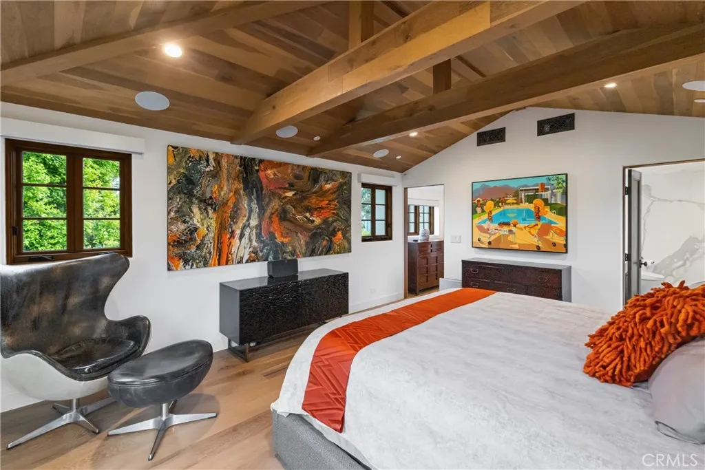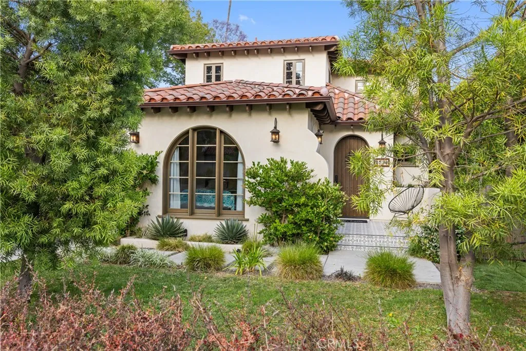 Step into a Spanish Revival showpiece where Old Hollywood glamour meets the finest in modern craftsmanship with an Open Floor Planright in the heart of historic Sunset Square. Built in 2020 with no expense spared, this 4-bedroom (3 up,1 down), 4.5-bath architectural masterpiece offers 3,323 sq ft of California indoor-outdoor living, surrounded by lush greenery and just steps from the very best of Hollywood and West Hollywood. Every inch of this home reflects top-tier materials and artisanal detail, from hand-selected custom tile work to rich beamed ceilings and poke millwork. The chefs kitchen is a true centerpiece, featuring a grand center island, custom bar, and elegant dining area designed for hosting in style. The expansive living areas seamlessly open to a verdant backyard oasis with a covered heated veranda, elevated dining deck, and a romantic Zen-inspired fire pit loungeperfect for evening gatherings under the stars. The primary suite is a retreat unto itselfcomplete with modular dual closets, a luxurious spa bath, and a Juliette balcony framing treetop and Hollywood Hills views. Additional highlights include a detached media room/office/gym with climate control and custom finishes, as well as a Tesla EV charger. Located on a sun-drenched street in one of L.A.'s most iconic and walkable neighborhoods, this home captures the spirit of classic Hollywood with the quality and comfort of modern luxury.