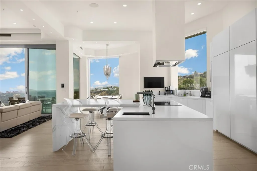 Sitting high atop the world famous Sunset Strip, the first thing you notice when you enter this three bedroom, three and a half bath masterpiece is the breathtaking citywide views of Century City, Hollywood, Palos Verdes and on a clear day; the Pacific Ocean and Catalina Island. Once inside, the incredible amenities are everywhere: Three floors, each with their own private decks and gorgeous views. Miele appliances and Japanese toilets throughout. A built in 65" television with a retractable interface. A high end Savant Home Security System, along with a two car garage. The house is perfect for entertaining and boasts a thumping, high end, club level Home Sound System with Klipsch speakers throughout the entire house. External and internal color lighting system that can be changed with a push of a button. The primary suite is the entire bottom floor and comes complete with a large soaking tub, Tonal workout gym system (membership not included) and elliptical machine, massive walk-in closet and instant access to the stunning infinity pool, hot tub and gas fire pit that overlooks all of Los Angeles. Centrally located in the Hollywood Hills West means easy access to all the countless amenities found in West Hollywood, Beverly Hills, Westwood and the entire Westside.