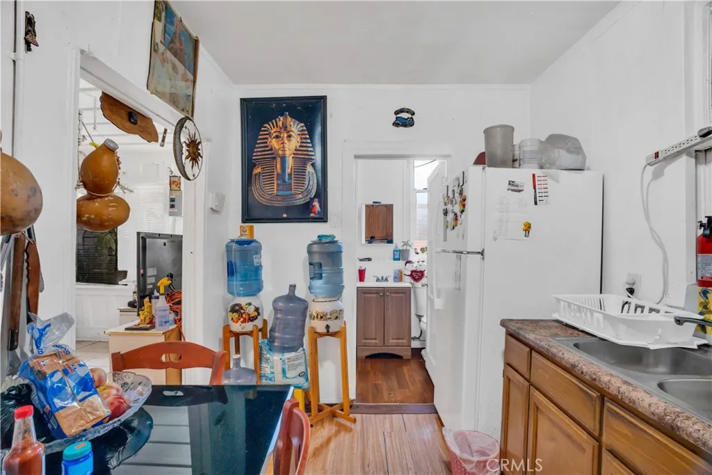 PRICE REDUCED TO SELL with NOT ONE but TWO rental units in rear with separate entrance. Home is LARGE with lots of character and personality. Boasts of original character with the ability modify as desired or leave its quaint appearance. Living room features very high beamed celings with fireplace, foyer, LARGE dining room area with chandeleir, LARGE kitchen w/eat-in breakfast area with lots of light and windows, overlooking backyard surrounded by fruit trees and peace. Some upgrages and separate laundry room. Minutes from DTLA, SOFI, USC, CRYPTO Arena & Convention Center. Great for multifamily and/or income from nearby college students. Come see this one while it lasts!
