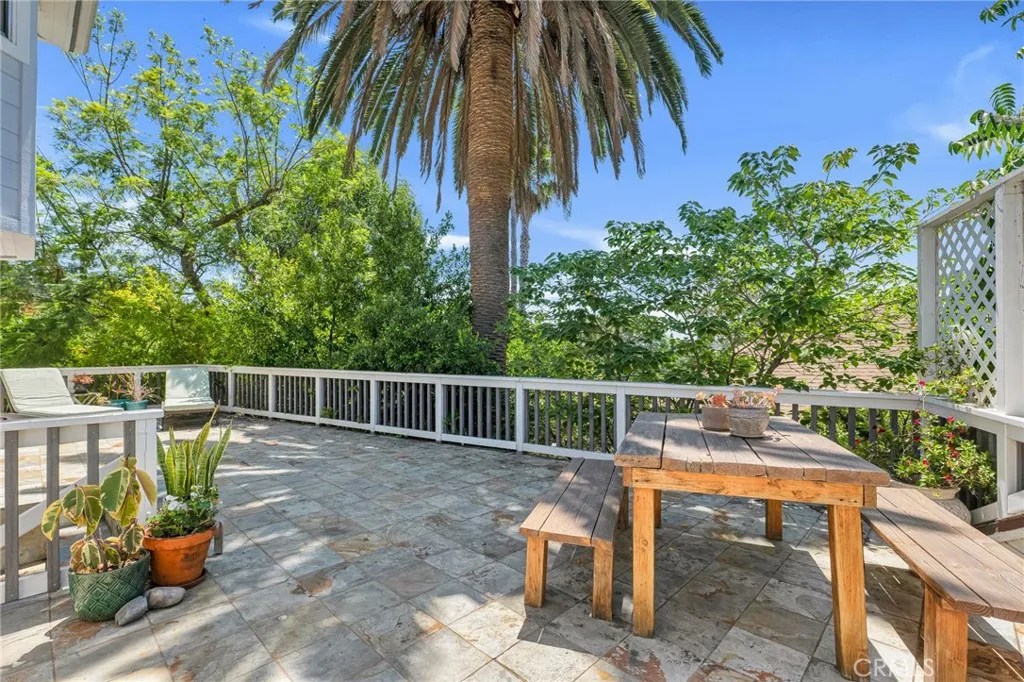 Tucked into the quiet, verdant hills of Elysian Heights just moments from Sunset Blvd. and Echo Park Ave, this rare offering expresses timeless soul with modern comfort. This 3 bed+loft / 2.75 baths with 2,044 sqft blends beautiful original Craftsman aesthetics with upgraded features. Highlights include owned solar panels, hardwood floors & high ceilings throughout. Set back behind a white picket fence offering added privacy and an unobstructed streetscape (no street-parking on this side). A lush front yard anchors the home with a striking Seco palm as its focal point. Step through the front door to a luminous, airy enclosed front porch, perfect for relaxing. A wide, naturally lit living room creates an inviting space with original hardwood floors. Columns frame the archway leading to the dining room where wooden French doors peer out to flagstone deck - creating indoor/outdoor flow. The open, updated kitchen brings together quartz surfaces, glass-tile backsplashes, tile flooring & a walk-in pantry. On the main floor youll find a well-scaled bedroom with access to a full hall bath. Upstairs, a large landing space makes for a wonderful home office/study. The primary suite boasts cathedral ceilings, a gas fireplace, bay windows with shutters, a walk-in closet & spa-like en-suite bath with dual sink vanity & dual shower-heads. The charming third bedroom offers picturesque views, especially at sunset, out to Downtown LA & the surrounding hills. Outdoors, the home delivers a trifecta of spaces including a flagstone terrace spanning the width of the home, a pergola-shaded deck wi