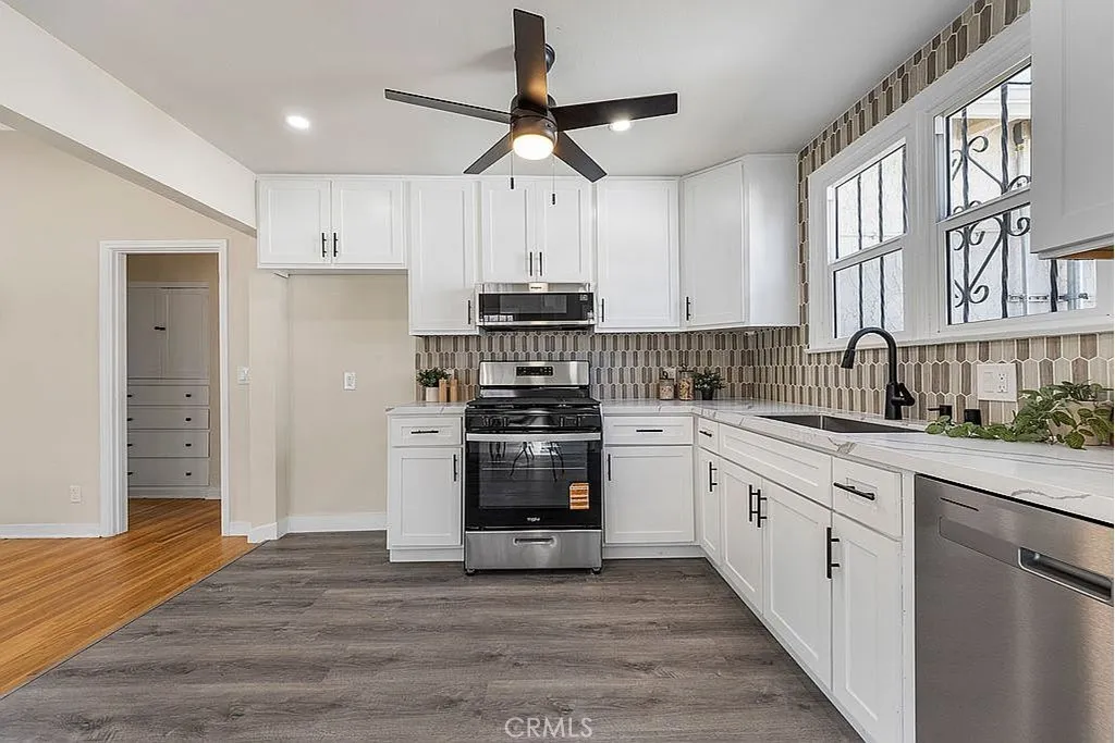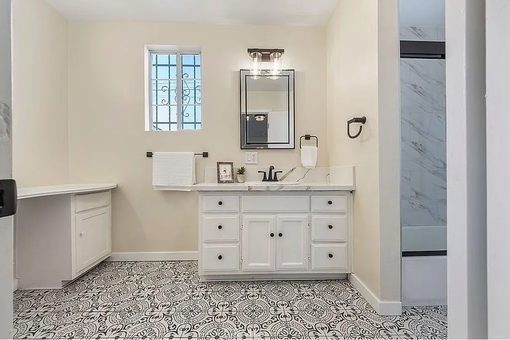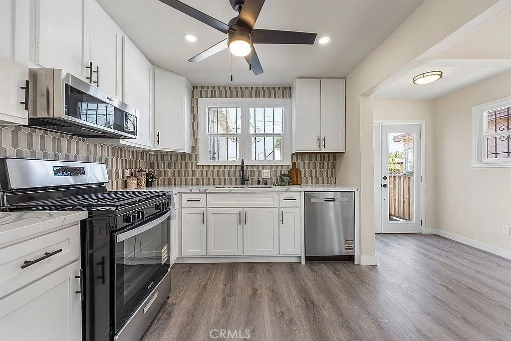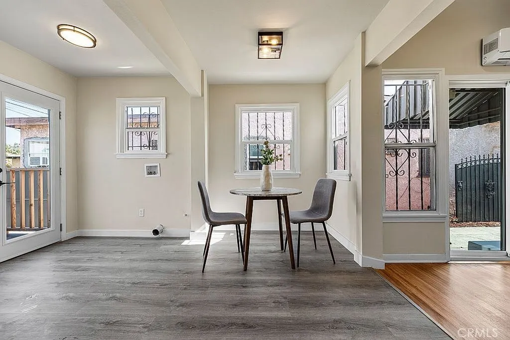 Classic Spanish style home with Smart Updates and Timeless Charm. This 2-bedroom, 2-bath Spanish single family home blends original charm with thoughtful upgrades that make daily living easy. You won't find a better home living alternative than this 2 bedrooms and 2 bathroom centrally located in the Los Angeles neighborhood hub of Westmont square a true pride of ownership community! The functional floor plan is ideal for the 1st time home Buyer in need of a move in ready property. The living and dining area present the perfect family setting with several windows offering tons of natural light, arched ceiling, newly restored original hardwood flooring throughout. The bathroom was tastefully remodeled with modern tile design, custom shower with a glass door, and matte black fixtures. And let's not forget the heart of the home, the modern fully equipped kitchen designed for all who love to cook and entertain with ease. Neighboring the kitchen there's a small breakfast or nightcap nook to enjoy coffee, tea, spirits & quick bites. Additional improvements & amenities include a new french doors leading to a patio deck, freshly painted exterior & interior, private backyard with a long driveway that will accommodate parking for at least 3 cars. also offers brand new sprinkler system and landscape. The lot size with its designated R1 zoning provide the opportunity to build out an ADU for future value add appreciation while creating cash flow. Commuters enjoy close proximity to all freeways, public transportation, shopping centers, schools, Destination Crenshaw, the SoFi and Intuit Do