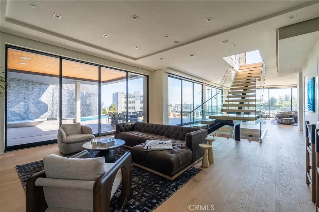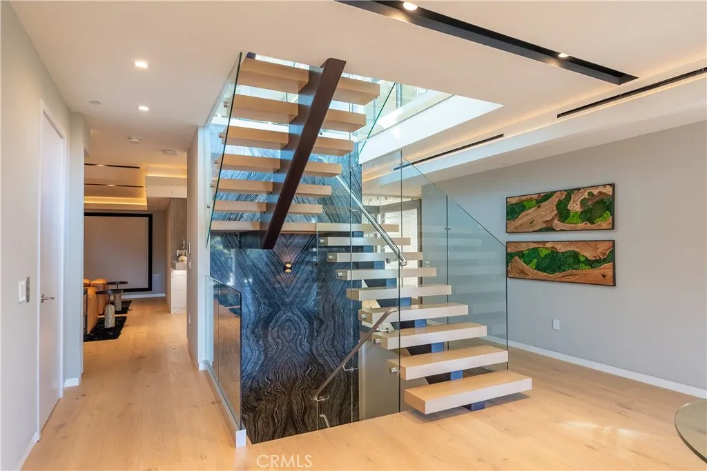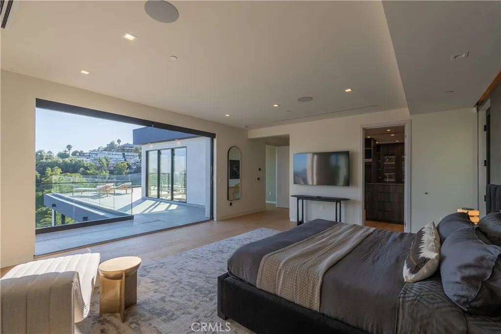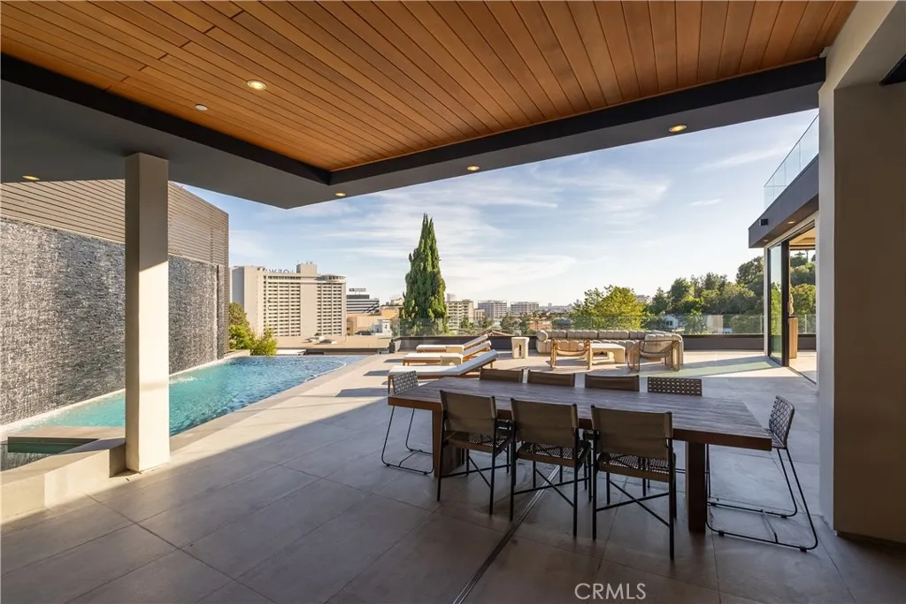 Welcome to this Modern Luxury Estate in the prime Hollywood Hills! With the best views of the city, this exceptional residence blends cutting-edge design with high-end finishes, offering the ultimate luxury living and entertainment. Spanning multiple levels, the home features 6 generously sized bedrooms and 7 bathrooms, each with en-suite configurations and custom walk-in closets. The entry-level boasts three guest suites, a state-of-the-art movie theater, and a full bar, creating a perfect setting for entertaining. The main living area showcases floor-to-ceiling sliding doors, seamlessly connecting indoor and outdoor spaces. The chefs kitchen includes a large island, walk-in pantry, and premium appliances, opening to a resort-style deck complete with an infinity pool, rockwall waterfall, oversized hot tub, built-in BBQ, and wet bar, all overlooking stunning views of Hollywood. The top level is dedicated to the primary suite, featuring panoramic city views, a custom walk-in closet, and a luxurious bath with a soaking tub positioned to overlook Los Angeles. The primary suite has a private patio tucked away in the back with a private staircase to the pool. There's an additional en-suite bedroom, ideal for an office, also provides access to a private rooftop deck with unobstructed city views. On the lower level, you'll find another en-suite bedroom perfect for a gym or guest quarters. Additional highlights include a smart home system, full-service elevator, built-in surround sound, full security system, automated blinds, a 4 car garage, and a privately gated entrance. This one