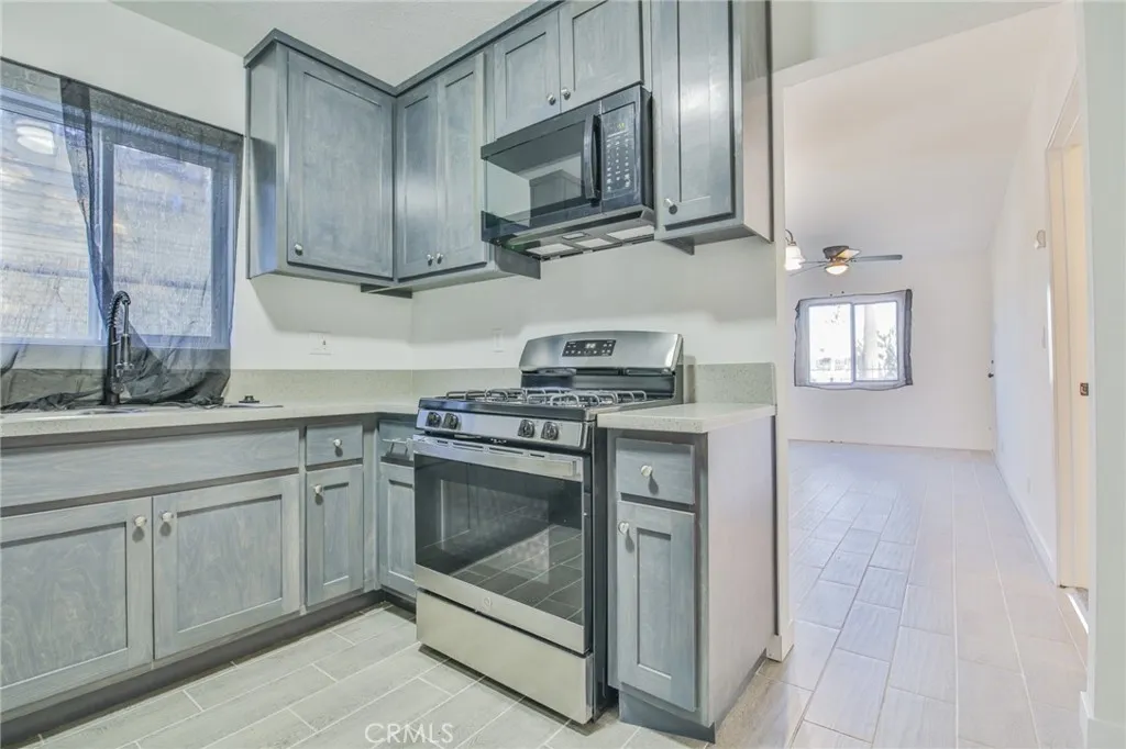 Great Starter Home with large backyard. Move in ready... Partially converted garage with kitchenette that could be used as a 3rd bedroom or a rental single with its own side door. Features include: 2 Bedrooms / 2 Bathrooms + Partially Converted Garage with a Kitchenette, Beautiful kitchen with granite counter tops, updated bathrooms, Tile flooring in Living room, Kitchen, and Baths, New Carpet in Bedrooms. Uncovered driveway parking. Alarm on property, Freshly painted interior and exterior. This is a must see!