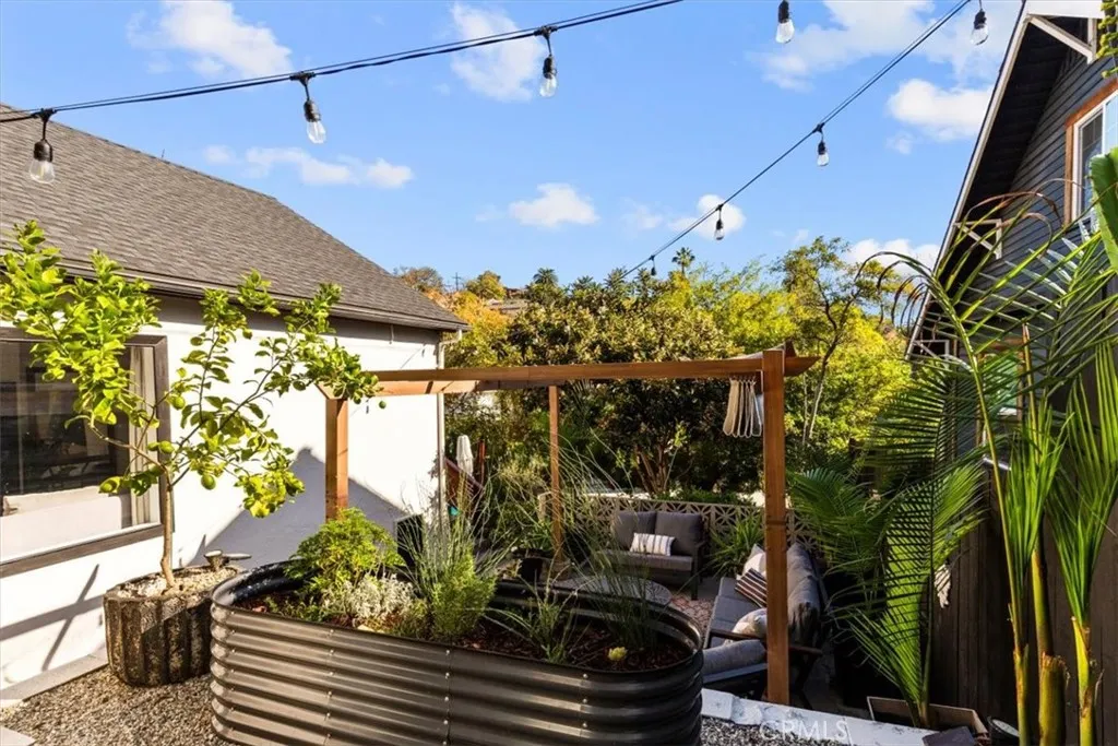 Perched atop a gentle hillside in Silverlake, 22072209 Apex Ave captures the essence of California living where historic charm meets modern design. Reimagined with a fresh architectural perspective, this dual-residence estate offers a rare balance of artistry, comfort, and flexibility in one of Los Angeless most sought-after neighborhoods. Behind a private gated entry, the residence unfolds into two harmonious homes surrounded by lush greenery, curved pathways, and thoughtfully designed outdoor spaces. The crisp white exterior, accented by black trim and warm amber wood, sets a timeless tone that continues throughout, as every corner invites connection to nature and the laid-back sophistication that defines Silver Lake living. Lush landscaping with intimate garden nooks creates great areas for morning coffee or evening wine, while multiple outdoor areas including a cowboy pool, fire pit, pergolas, and a charming greenhouse offer inviting spaces for relaxation and entertaining. From sun-dappled afternoons to evenings beneath the stars with views of the downtown skyline, the home is a private oasis above the city. Natural light floods large windows and glass doors, blending indoor and outdoor spaces seamlessly. The home has airy living areas where mid-century influences meet a warm California coastal aesthetic. Reclaimed original hardwood floors lend authenticity, grounding the modern updates with a sense of timeless character, while curated fixtures and natural hues create a soothing, artful ambiance. The kitchen features quartz countertops, custom fixtures, and stainless st