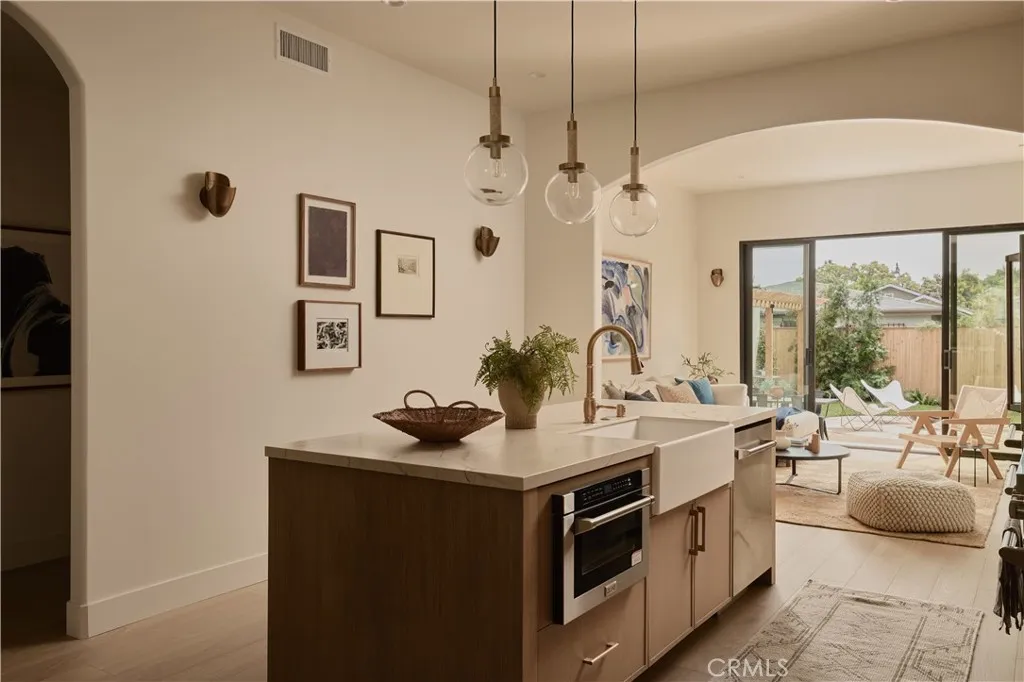 Tucked into the heart of Frogtown, 2248 Glover Place is a beautifully executed Spanish-style residence that lives like brand-new construction, complete with a detached studio ADU, offering the ideal blend of flexibility, lifestyle, and income potential. The main home features 3 bedrooms and 3 bathrooms, thoughtfully designed with soaring 10-foot ceilings throughout, creating an open, airy feel from the moment you step inside. A welcoming sitting area flows seamlessly into a defined dining space, leading to a stunning chefs kitchen anchored by a large islandperfect for both everyday living and entertaining. The expansive great room at the rear of the home opens directly to the backyard, creating a true indoor-outdoor experience that defines Southern California living. All three bedrooms are generously sized, including one with its own en-suite bathroomideal for guests or a home office setup. The primary suite is a true retreat, featuring impressive scale, a walk-in closet, and a spa-like bathroom complete with a freestanding soaking tub, walk-in shower, and dual vanity. Out back, the property continues to impress with a private, well-sized yard and a detached studio ADU equipped with a full kitchenette and bathroom, perfect for guests, rental income, or a creative workspace. A dedicated laundry area adds convenience and functionality. Situated on a walkable street just moments from the LA River bike path, local coffee shops, restaurants, and some of Frogtowns most popular hotspots, this home offers the perfect blend of design, usability, and location, an exceptional opportun