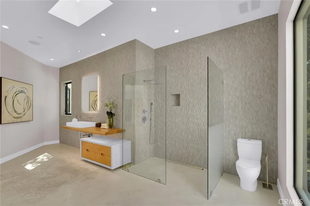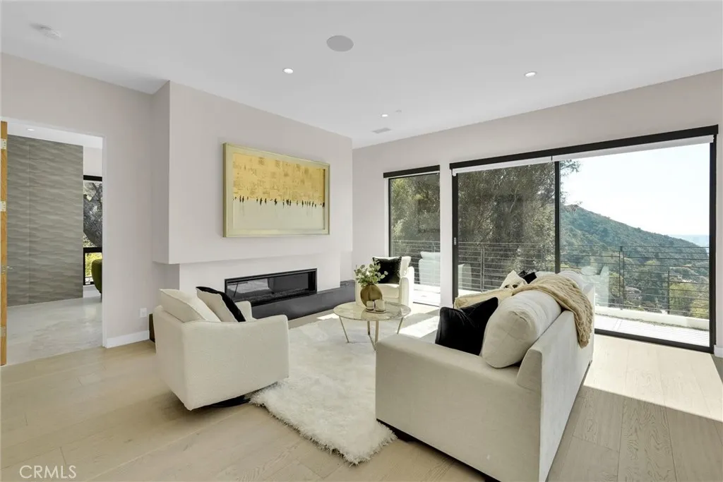 This beautiful, newly renovated modern, smart home with 360 degree views, is situated on nearly an acre lot above the magic and serenity of Hollywood Hills, overlooking Nichols Canyon. A gated private driveway is leading you to the main house with bright, airy and open living spaces, large balconies with views of the mountain and natural surroundings. The main house consists of 2 bedrooms on the ground floor, the surround sound movie theater, large and open kitchen, a master suite and a guest suit upstairs, backyard with large pool, outdoor tv area, a lounging sun deck for your and your family to enjoy the natural surroundings. The detached guest house can be used as a private retreat or could be transformed it into a work space of private gym. Must See!