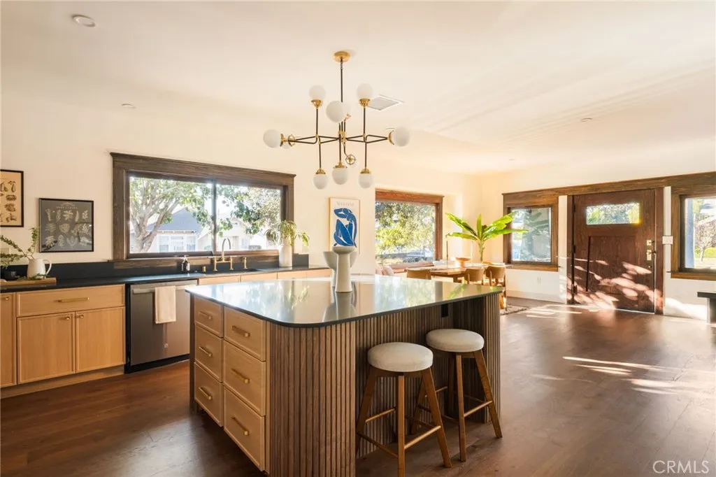 This is one of those special homes that the moment you step foot inside you will feel its magic! Romantic, timeless & breathtakingly beautiful, circa 1908, this spacious 4 bed 3 bath Craftsman dream awaits the next chapter to its ever evolving story. Located on a lovely tree-lined street in the heart of LA's highly sought after Jefferson Park neighborhood this sweet home has been painstakingly restored and customized down to every last detail. Every inch of the home has undergone thoughtful restoration or been totally rebuilt from the architectural details to the brand new foundation, roof, and systems throughout. It's a perfect blend of soulful, historic character and meticulous modern craftsmanship. Upon entering the lush front lawn you'll be met by a large covered front porch that offers an idyllic setting to sip coffee morning coffee in the shade! A dramatic restored wooden door leads you into an easy flowing floorplan surrounded by beautiful wood windows with rich wood floors spanning throughout. A charming built-in window seat, custom design elements and an abundance of natural light are just a few of the exceptional features that make each space so remarkable. The bright chefs kitchen is a true centerpiece, boasting top of the line appliances, a hand crafted island and custom cabinetry. Two of the four spacious bedrooms are ensuites with gorgeous attached bathrooms and are located exactly where you'd want them to be in a layout that maximizes space and comfort. The main primary suite with vaulted ceiling is nothing short of epic and serves as a truly elegant refuge t