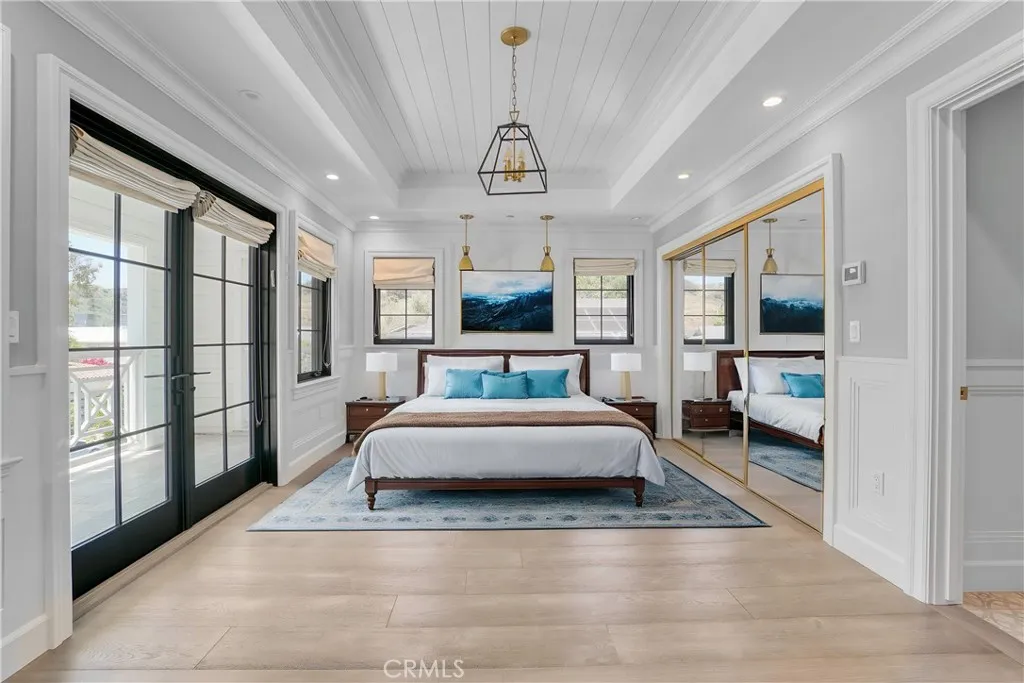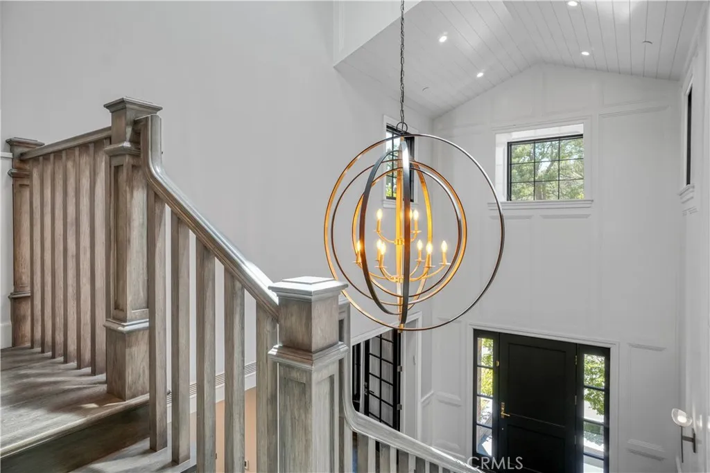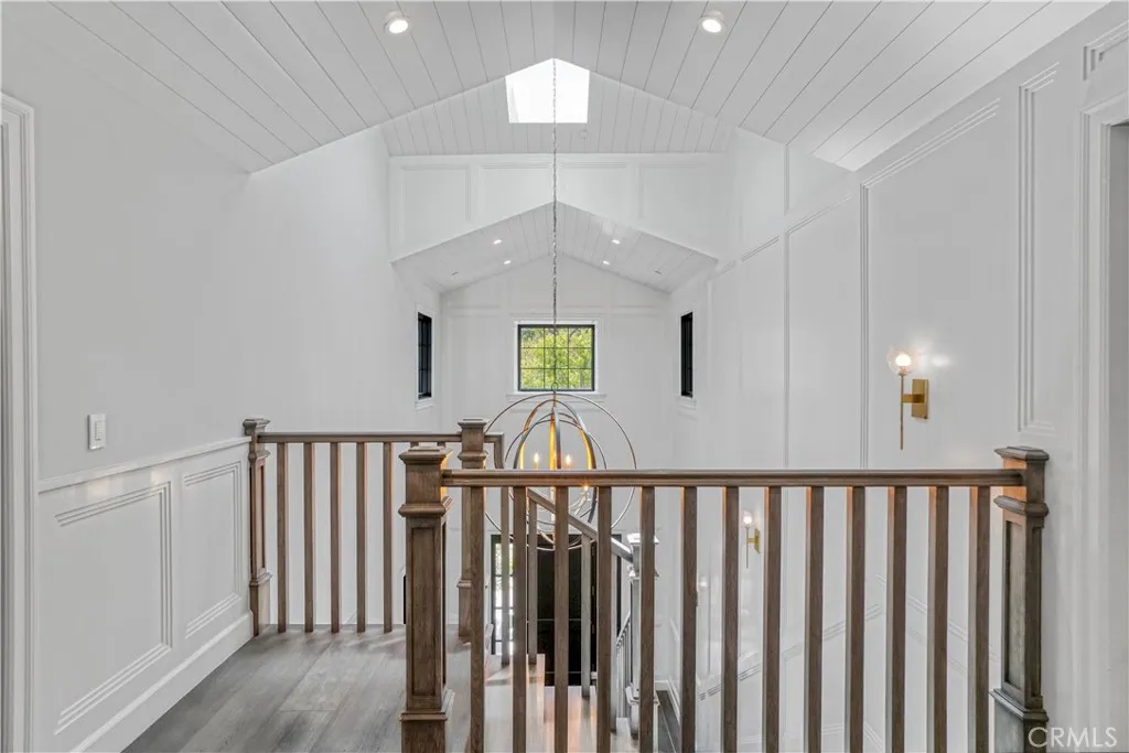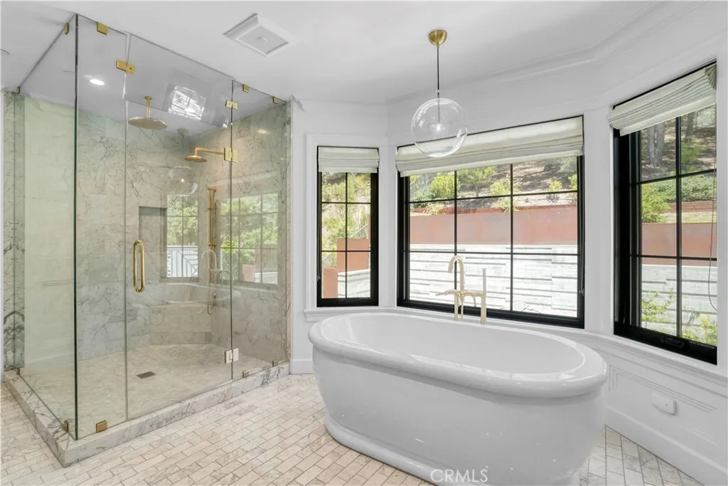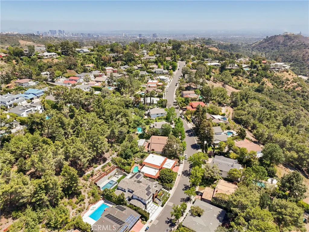 Beautiful bright Modern Farmhouse estate in Brentwood Hills built in 2020, this elegant five bedroom, six bath exquisite smarthome estate sits far back on a quiet cul de sac., spanning approx. 5,600 sqft of living and and 800 sqft of covered heated outdoor patio on an expansive almost 20,000 sq. Ft. lot with upstairs views of the Santa Monica mountains. Upstairs Primary bedroom and guest bedroom balconies open with bi-fold doors. This amazing home showcases elegant hardwood floors throughout, generous use of stone and quartz, designer fixtures and finishes, the main floor open living space includes a gourmet kitchen, formal dining room, great living room, a family room with bi-fold expansive doors that open completely to the covered heated patio, pool, BBQ and a contemporary entertaining area. A ground floor movie theater, a home office and a full bedroom suite complete the main floor with no steps. Upstairs the oversized primary retreat features vaulted ceilings, a marble fireplace, a large balcony with mountain views, a gorgeous custom finish closet and a spa retreat suite bathroom. In addition, upstairs, there are three large bedrooms, a library sitting/ reading area with the same unbelievable views. The primary suite overlooks the infinity pool, a fire pit, the outdoor cooking area, and the covered heated patio. The three car garage is completely finished with overhead lighting and security. Keypad smart home controls and a solar system throughout. Within the Kenter Canyon School and Palisades Charter district, surrounded by outdoor tranquil landscape, this home is trul