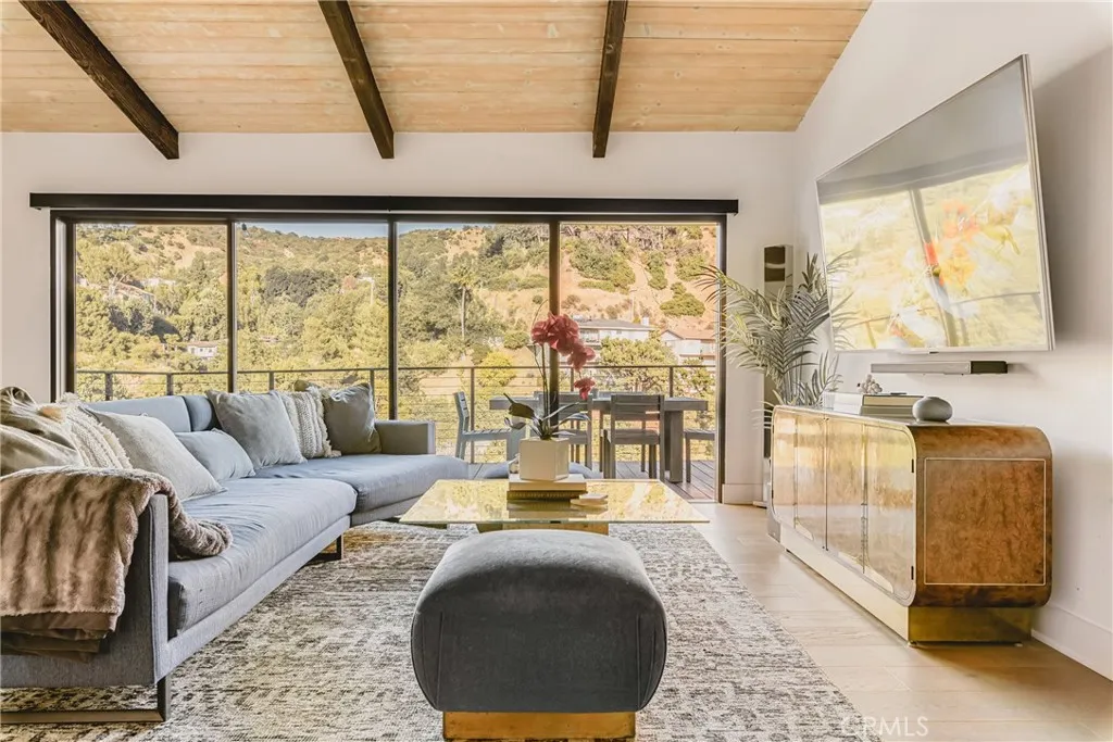 LOCATION LOCATION! LOOK at the PRICE! Incredible Street, Neighborhood - Surrounded by MULTI MILLION Dollar$ Homes, all the surrounding properties are $3M to $10M!!! Not your average LA Street, lots of parking for guests! Mid-Century Magic with Unreal Views + Seamless Indoor-Outdoor Living Moments from Iconic Sunset Strip! Tucked in lower Nichols Canyon, just minutes from the Sunset Strip & West Hollywoods finest dining, nightlife, and energy & trails, this mid-century modern retreat delivers timeless style, jaw-dropping views, & the kind of indoor-outdoor flow that defines LA living. Set behind a gated entry, the home opens to a spacious private front patiorare, usable outdoor lounge perfect for slow mornings, sun-soaked workdays, or evening cocktails before heading out. This outdoor space connects effortlessly to the interior, setting the tone for a lifestyle rooted in openness, light, & flow. Inside, vaulted ceilings, exposed beams, & wide-plank flooring create an airy, architectural feel. Floor-to-ceiling sliding glass doors dissolve the boundary between inside & out, drawing you toward the upper view deck, where youll host unforgettable dinners, cocktails, easy al fresco dining & entertaining or laid-back sunset hangs w/canyon & twinkling city lights as your backdrop. Cook's kitchen is bright, stylish, featuring clean lines, top of the line stainless steel appliances, contemporary counters, & skylight that floods the space with natural light. The primary suite is your private retreat, w/oversized windows framing sweeping canyon views, built-in storage, & spa-like bath
