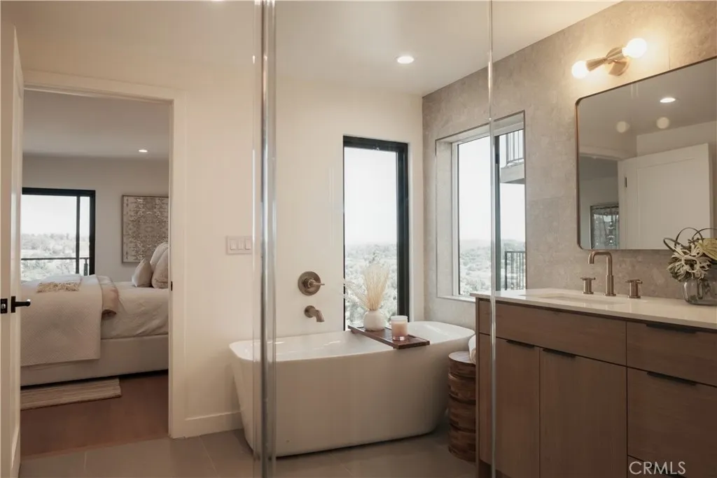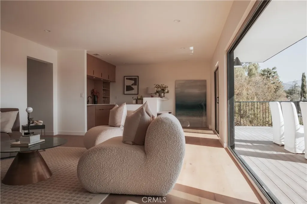 Perched atop the hills of Eagle Rock, this contemporary masterpiece commands sweeping, unobstructed city and mountain views from nearly every room a true rarity in Los Angeles. Wake to golden sunrises over the San Gabriel Mountains, and unwind to the glittering skyline each evening. Reimagined in 2025, the home features a sleek open-concept design, natural oak floors, and floor-to-ceiling picture windows that seamlessly blend indoor comfort with the beauty of the surrounding landscape. The main level centers around a chefs kitchen outfitted with Thermador appliances and custom oak cabinetry, opening to a generous dining and living area anchored by a modern fireplace and integrated oak built-ins. A separate family room adds flexible space for work, play, or quiet relaxation. On the lower level, the primary suite offers a true retreat with a spa-style soaking tub overlooking the hills, dual walk-in closets, and direct access to a continuous view patio shared by two additional en-suite bedrooms. The entertainment level below is designed for hosting complete with a full bar lounge, fourth en-suite bedroom, and a spacious deck ideal for al fresco evenings beneath the stars. With its private entrance, this floor can double as a guest residence, studio, or private suite, complemented by a bonus room perfect for a gym, theater, or playroom. A striking expression of architecture, light, and landscape, this home captures some of Eagle Rocks most dramatic panoramic views all just minutes from Eagle Rock Boulevard cafs, Occidental College, Pasadena, Glendale, and Downtown Los Angele