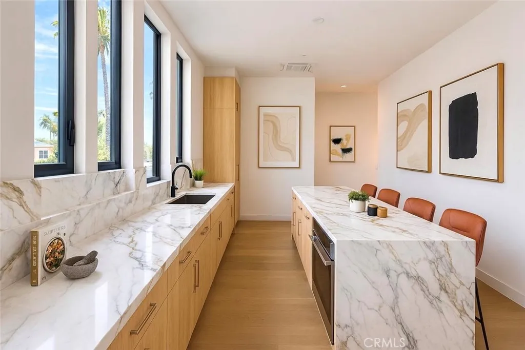 MUST SEE! NEW CONSTRUCTION IN WEST ADAMS! KITCHEN HAS BEEN REDESIGNED AND RELOCATED! A rare offering that truly stands apart. Do not miss this exceptional contemporary residence at 2619 S Rimpau, newly completed in 2026 and ideally positioned in the heart of one of Los Angeles most exciting and rapidly evolving neighborhoods. Spanning over 2,200 square feet, this architecturally striking home showcases 4 en-suite bedrooms and 4.5 baths, thoughtfully designed to deliver a seamless blend of elevated modern design and everyday livability. From the moment you enter, youre met with an abundance of natural light, bespoke finishes, and custom millwork that create a warm yet sophisticated atmosphere throughout. The newly reimagined chefs kitchen, now relocated into its own dedicated entertaining space, serves as the true heart of the home. Outfitted with premium appliances, solid wood cabinetry, sleek quartz countertops, and an oversized waterfall island, it offers both functionality and a stunning visual centerpiece ideal for hosting and daily living alike. Expansive indoor-outdoor flow leads to a private, beautifully landscaped backyard with lush lawn, perfect for entertaining guests or enjoying peaceful moments at home. Take the experience even higher with rooftop access featuring sweeping panoramic views of DTLA, Century City, the Hollywood Sign, surrounding hills, and even snow-capped mountains, paired with unforgettable sunsets and sparkling city lights. Additional features include PAID-OFF SOLAR, EV charging, smart climate control at your fingertips, a private two-car garage