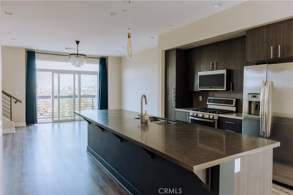 Incredible tri-level townhome with prime panoramic views of Atwater Village and the LA River at the Latitudes community in Silver Lake/Ivanhoe school district. This home features three bedrooms, two-and-a-half bathrooms. Upon entry, you'll find a versatile flex room on the first level, perfect for a home office or gym. The second level boasts an open-concept floor plan with a sun-drenched living area, balcony with views, kitchen, and dining area. Complete with large windows, high ceilings, recessed lighting, hardwood flooring, a center island, stainless steel appliances, this level also has a laundry room and powder room. The third level offers three generous bedrooms and two full bathrooms, providing ample space for family or guests. The master bedroom comes upgraded with soundproof window panes and a custom mirrored sliding door. Various other upgrades throughout the home, including tasteful velvet curtains, premium window treatments and hardwood floors throughout. Delight in the outdoors on the rooftop patio with beautiful sweeping views from both directions and an open entertaining space. The unit has an attached 2-car garage with direct entry into the first level. The orientation of the home is elevated above street, with an unobstructed frontage and dedicated entry path, thus providing privacy and stunning views. This securely gated complex offers a community pool and spa for your relaxation and enjoyment and guest parking. Located within a good school district, conveniently located across from Play Preschool, and close proximity to Atwater, Silver Lake, Griffith Park
