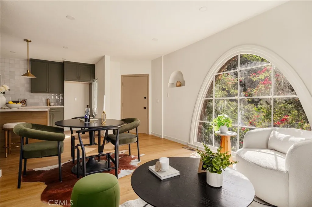Welcome to 3517 Ellsworth a hidden Silver Lake retreat blending modern upgrades with tranquil privacy. Thoughtfully remodeled with a clean, open-concept layout, the heart of the home is a stunning designer kitchen featuring a central island wrapped in Taj Mahal porcelain countertops, custom cabinetry, and brand-new appliances perfect for both everyday living and effortless entertaining. The home has been comprehensively upgraded for comfort and peace of mind, including a fully renovated bathroom, new flooring throughout, recessed lighting, and major system improvements such as new HVAC, updated electrical wiring, and copper plumbing. French doors off the rear bedroom open to a private patio and serene backyard oasis surrounded by mature trees and lush greenery, creating a peaceful escape rarely found in such a prime Silver Lake location. An automatic gate leads to an extended driveway and a versatile bonus space ideal for a creative studio, home office, gym, or future ADU potential (buyer to verify). Modern design. Upgraded systems. Ultimate privacy. All in one of Silver Lakes most sought-after pockets.