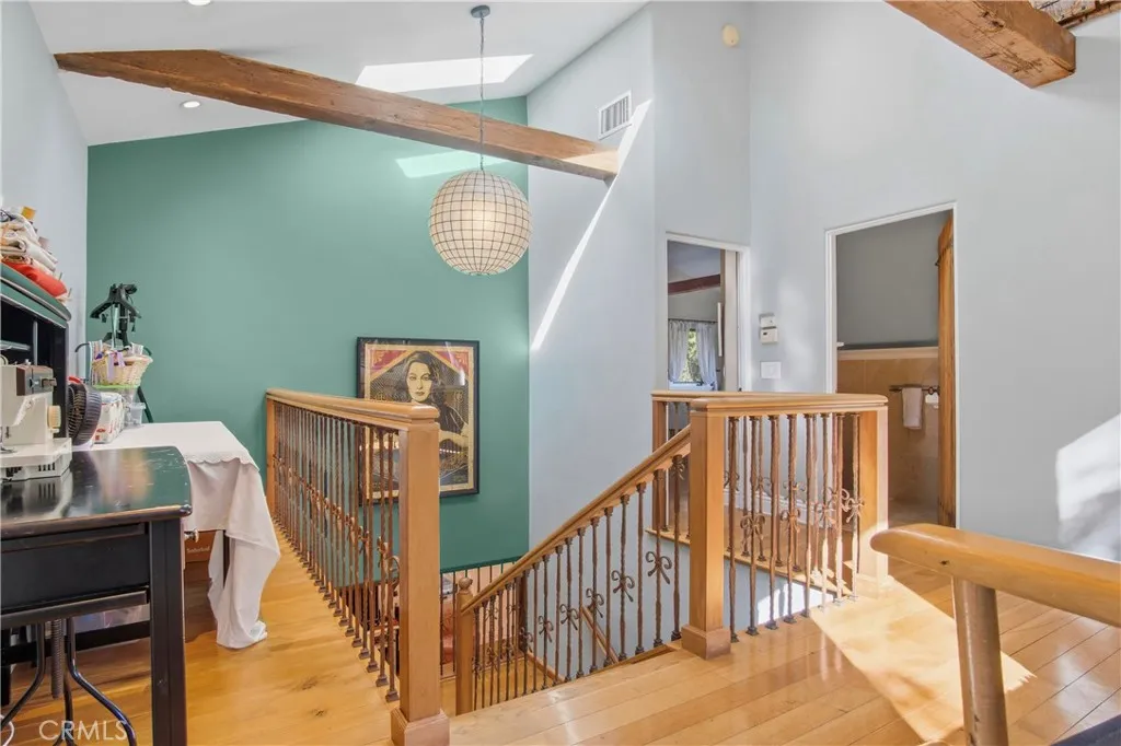 Perched atop Grand View Blvd, this custom-built artist's estate offers city and ocean views on a nearly 10,000 sq ft lot. The main home has 4 bedrooms and 5 bathrooms, including a spacious upstairs primary suite with two patio balconies facing ocean and mountains including a wood burning fireplac. California-spanish charm throughout with huge reclaimed wood beams and doors, multiple decks, and seamless indooroutdoor flow. The foyer opens to a living room with Moroccan-tile fireplace, leading to a family room, dining room, and open cook's kitchen with center island, custom tilework, and cabinetry. Three additional bedrooms and 3 bathrooms on the main level. The entertainers backyard includes a brick pizza oven, large patio, yard, and saltwater pool/spa. A full guest house with kitchen and bath sits below a rooftop viewing deck offering nearly 360-degree views from the Hollywood Sign to the ocean. Additional rooftop lounge areas complete this one-of-a-kind property.