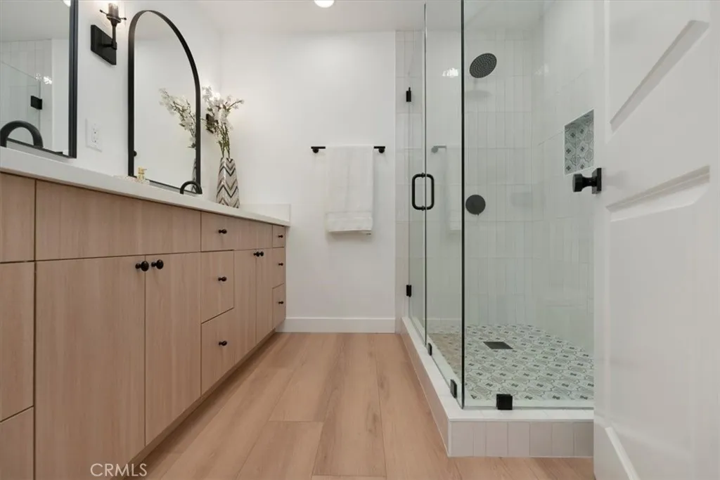 Nothing left to do but fall in love. Nestled in the heart of historic Leimert Park, where leafy, tree-lined streets and iconic Spanish architecture evoke the timeless elegance of Los Angeles' golden era, this masterfully reimagined 3-bedroom, 2-bathroom residence is the perfect blend of classic charm and modern sophistication. Set on a generous lot, the home is a rare study in balance honoring its original character while delivering a truly elevated, contemporary living experience. Large windows bathe the interiors in natural light, while upgraded interior and exterior doors create a seamless, refreshed flow throughout. Expansive archways open sight lines and enhance connection between the living, dining, and chef's kitchen spaces. The kitchen is a showstopper: new wood cabinetry, hardware, and exquisite quartz countertops anchor the space with timeless luxury. Each bathroom has been thoughtfully redesigned for both style and comfort. The primary suite features a newly configured bath with new counters and finishes. A fully new hallway bath completes the ensemble, with cohesive, high-end fixtures. Beyond its beauty, this home delivers exceptional infrastructure and peace of mind. Enjoy year-round comfort with a new HVAC system and thermostat, a high-efficiency tankless water heater, an upgraded 200-amp electrical panel LED lighting. Step outside to find meticulously landscaped grounds designed for both relaxation and entertaining. Fresh sod, lush new plantings, and decomposed granite pathways invite you to linger. A new wood fence ensures privacy. Even the garage received a