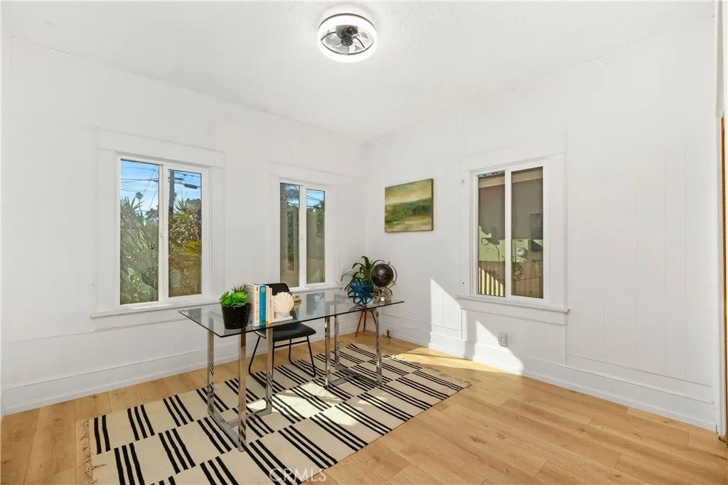 Welcome to3959 Denker Ave, a charming 3 bedroom, 2 bathroom LARD2 home nestled in the heart of Los Angeles. Spanningapproximately 1500 square feet, this residence has been recently refreshed withnew interior paint and flooring, all new energy-efficient windows, solar panels, drought tolerant landscaping, PLUS a rented ADU to provide an ideal atmosphere for both income and residential life in the city. Step into this historical beauty through your one of a kind front door, and into the light filled remodeled living and dining room, complete with cozy fireplace. Enjoy the eat-in kitchen with brand new quartz countertops, updated fixtures, and plenty of cupboard space. There's a bonus enclosed porch (permitted!) that can be used as a flex room for workout, office, or just relaxing. Conveniently featuring indoor laundry hookups and SO MUCH parking space - you'll never have to worry about LA parking here - even space for RV's, or 3 tenants to park next to eachother!!! The back houseoffers the flexibility of an accessory dwelling unit with bathroom and kitchenette, perfect for multigenerational families, guests, or rental income. Opportunity abounds for an additional Junior ADU (or even more with this zoning!) via your detached TWO CAR garage with power:this spacious garage is ideal for workshop projects, additional storage, or ripe for future conversion. Within biking / scooter proximity to USC:this lovely home also falls within the boundaries and qualifies for the guidelines of the USC Neighborhood Homeownership Program. Imagine an 8 minute bike ride to the University of Southe