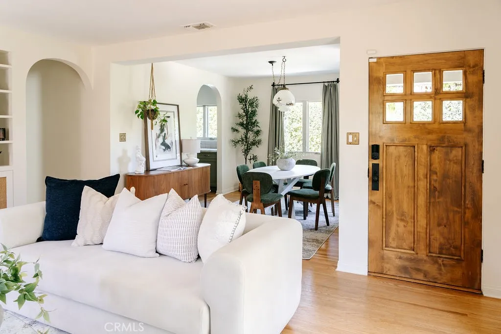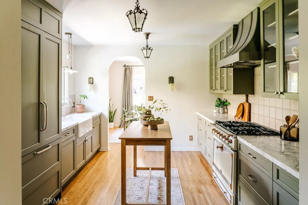 Tucked away in the heart of Los Angeles, 4070 Garden Avenue feels like a place where time softens and everyday life turns quietly magical. This enchanting 3-bedroom, 2-bath home, offering just under 1,500 square feet, blends timeless character with thoughtful modern updates creating a space that feels both elevated and deeply inviting. Rich in Spanish charm, the home tells a story the moment you step inside. One of its most captivating features is the original 1930 Old English leaded stained glass picture window, a true piece of artistry that filters light into a soft, romantic glow, setting the tone for the warmth and character found throughout. The living room is anchored by a stunning fireplace adorned with Batchelder tile, an iconic detail that adds depth, history, and undeniable charm. At the heart of the home, the gorgeous kitchen is both a showpiece and a place to gather, featuring a coveted La Cornue range that blends old-world craftsmanship with modern performance. Its a space that inspires slow Sunday mornings to lively dinners with friends. Sunlight pours through all brand new windows and doors, illuminating each room with a golden radiance. The home has been carefully enhanced with a new roof and new plumbing throughout, offering peace of mind, while the newly renovated bathrooms provide a sense of quiet luxury. Adding to the homes versatility is a one-car garage with an attached recreation space and laundry room, offering incredible potential to be transformed into a beautiful and functional ADU perfect for guests, rental income, or a private work-from-home ret