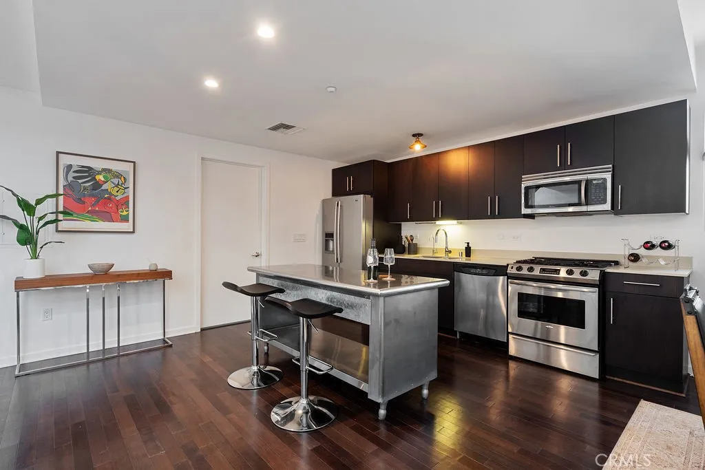 Step into this gated modern loft and experience the fusion of elevated design and artistic flair in the heart of Silverlake. Drenched in natural sunlight and bursting with personality, this expansive space boasts soaring ceilings, oversized industrial style windows, and wood floors all balanced beautifully by custom wood accents that bring warmth and texture. Situated as private end unit with views of the Griffith Observatory and the World Famous Hollywood sign for entertaining and sun soaking without the worry of who's around you. The open concept layout flows effortlessly from the sleek chefs kitchen featuring stainless steel appliances, quartz countertops, and minimalist cabinetry into spacious living and dining areas that blur the lines between indoor comfort and outdoor cool. Perfect for both cozy nights in and vibrant get-togethers, this home is an entertainers dream. Ascend the floating staircase to your airy mezzanine bedroom retreat, where youll find the perfect mix of privacy and openness. A spa inspired bathroom awaits with upscale finishes and a soaking tub that makes everyday feel like a wellness escape. Enjoy seamless indoor-outdoor living with your own private balcony upstairs and a lower patio thats perfect for morning coffee, al fresco dining, or a sunset wind-down. Set in one of LAs most dynamic neighborhoods, you're just steps from Silverlake favorites like Botanica, Cecis Gastronomia, Pine & Crane, and Izakaya Osen. Whether youre craving craft coffee, artisanal bites, or a night out, everything is at your doorstep. This is loft living at its most inspire