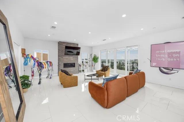 High above the citywhere the sunsets linger longer and the views stretch endlesslysits a home built for dreamers, creators, and anyone who wants to experience Los Angeles at its most cinematic. Welcome to your private hillside retreat: a 3,567 SF three-level architectural residence floating over a 10,460 SF lot, with sweeping mountains and valley panoramas that feel straight out of a film set. Here, every floor, every window, every angle tells a story. The moment you step inside, the first-level living room sets the tonewarm stone fireplace glowing, floor-to-ceiling sliders opening to an expansive entertainment deck where the skyline becomes your backdrop. Friends gather here. Ideas happen here. Golden hours become rituals. With 5 ensuite bedrooms and 2 additional half baths, the home is designed for comfort, privacy, and flexibility. Whether its hosting family, running a luxury Airbnb, accommodating production crews, or offering private suites to creatives during the 2028 Los Angeles Olympics, this layout adapts as life evolves. The second floor is the heart of the home: A primary suite kissed by morning light A dining area that spills seamlessly into the view A chefs kitchen designed for gatherings All opening onto a massive deck where the city feels close enough to touch Upstairs, three spacious ensuite bedrooms become peaceful hideaways for guests, long-term stays, or artists seeking quiet inspiration. The grounds are just as intentionaluplighting on olive trees, flagstone paths, manicured shrubs, and a gated driveway that holds three full-size vehicles in addition to a