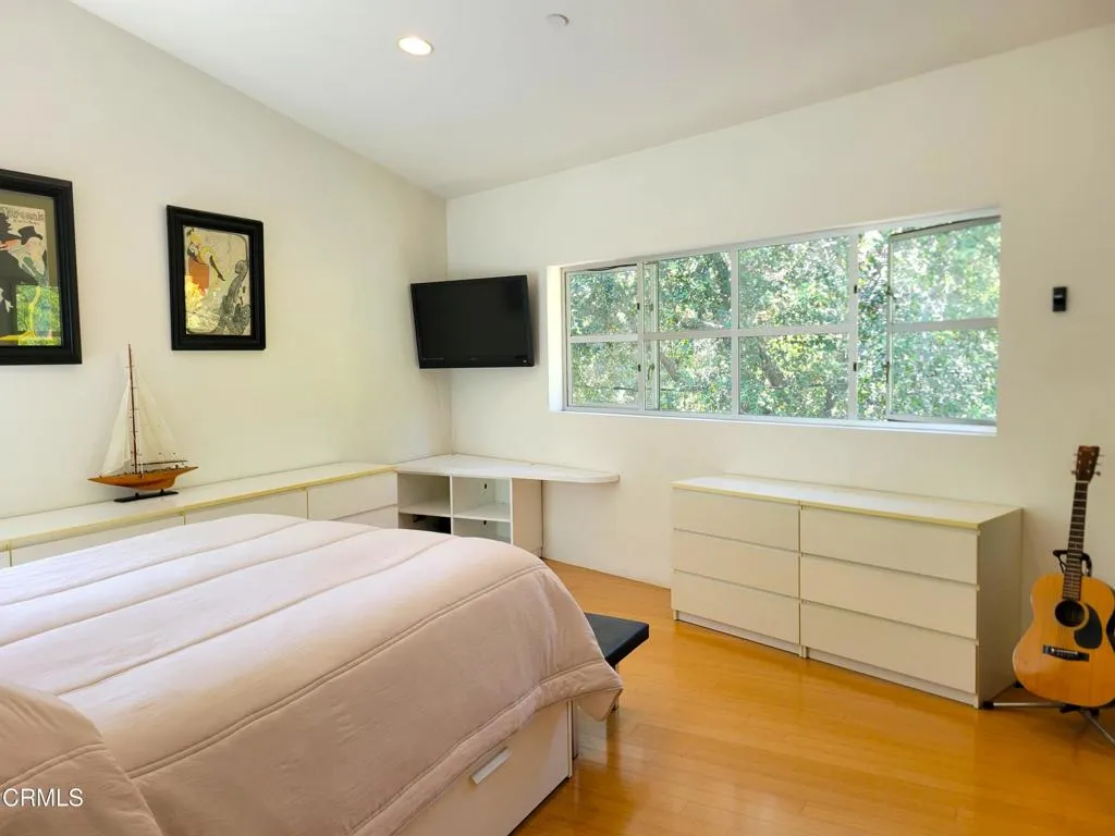 This captivating property, a one-owner meticulously crafted and preserved 2005 construction with ADU, is ideally positioned within one of Eagle Rock's most coveted and desirable neighborhoods. It seamlessly integrates a harmonious blend of Art Deco and modern industrial transitional design elements, creating a truly unique and elegant living space. The property's design aesthetic is prominently showcased through its impeccable attention to detail, characterized by clean, uncluttered lines, an inviting open floor plan, and the integration of premium, high-quality interior and exterior finishes throughout. The thoughtfully designed, user-centric floor plan is a standout feature, including upstairs bedrooms adorned with luxurious strand-woven bamboo floors, strategically positioned to be entirely separated from the main living areas, thereby ensuring both privacy and unparalleled comfort for residents. Furthermore, a fourth bedroom, intelligently located on the ground floor, boasts direct and independent entry points, currently functions as a versatile guest suite/ADU, adding to the property's adaptability and value. For those discerning homeowners seeking an expansive and modern open-concept home, the property features an impressive, living/dining, and kitchen space with polished concrete floors, clear anodized aluminum doors and windows, recessed lighting, and high-fidelity recessed ceiling speakers that foster a dynamic, modern, family-friendly lifestyle, promoting collaborative workspaces, increased interaction, and social engagement, making it an ideal setting for memorab