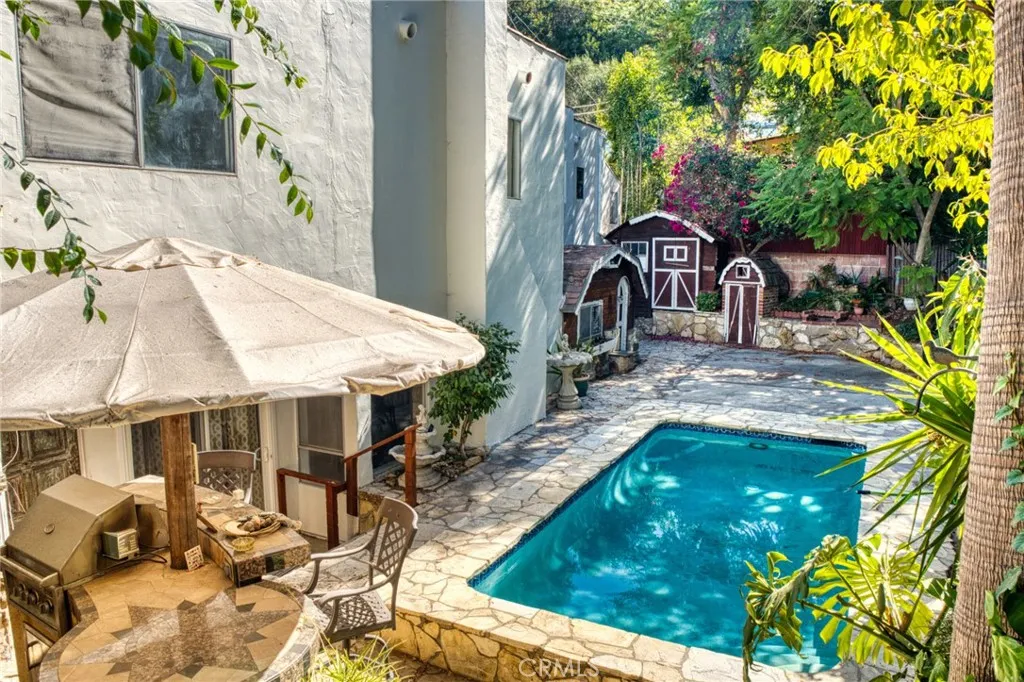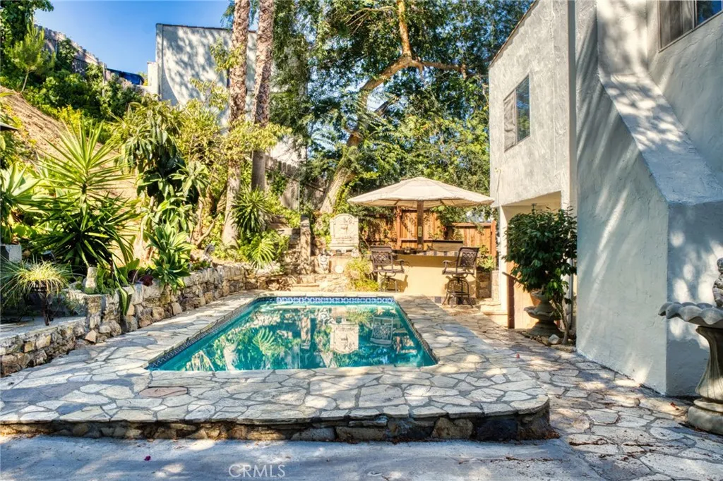 Can you believe this? Not only was this an awesome buy to start with, but the seller has just REDUCED it by $300,000! Look at the size and the LOCATION! First time on the market in over 70 years! This 1927 Spanish Revival in the coveted Los Feliz Oaks features 5 bedrooms, 3 baths, a newly updated kitchen and upstairs bathrooms. The primary suite features a private en-suite bath, while a cedar-lined hallway closet and built-ins in most closets speak to the thoughtful design and craftsmanship of the era. Set on two lush lots with a private pool framed by hand-placed Palos Verde rockwork, it's a rare blend of history and craftsmanship. Freshly Painted, inside and out. All this and a two-car garage for off-street parking, dont miss this rare opportunity to own your own vintage Hollywood Hills home!