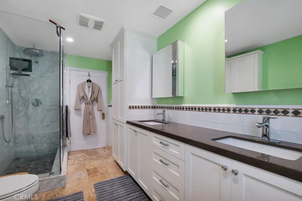 Step into this remarkable Westchester residence A TRUE HAVEN FOR MULTI-GENERATIONAL LIVING AND LARGE FAMILIES. Thoughtfully designed with flexibility and connection in mind, this modernized home offers two full levels of independent living space, each with its own kitchen, living and dining areas, and primary suite ideal for extended family, adult children, or guests seeking privacy without compromise. The first floor opens to a welcoming great room alongside three bedrooms, a laundry room, and two stylish bathrooms. Upstairs, three more bedrooms, including a second primary suite that's complemented by a large private steel-framed deck outfitted with natural gas and a custom auto-retractable deck awningan ideal spot for morning coffee or sunset gatherings year-round. The backyard is a true retreat, featuring low-maintenance, high-quality turf and ample space to relax or entertain. Throughout the home, youll find an updated roof and gutters, all new window treatments, new light fixtures throughout, new ceilings, a new garage door, a new sprinkler system front and back, new hardwood and marble flooring, recessed lighting, and efficient systems, including each floor having its own HVAC unit and two tankless water heaters. Powered by solar and equipped with three Tesla PowerWalls, this home offers exceptional energy efficiency, reduced utility costs, and reliable whole-home backup during outages. A dumbwaiter, updated garage, paver stone driveway, and sprinklers add everyday convenience. Blending flexibility with sophistication, this property offers a rare opportunity for fam