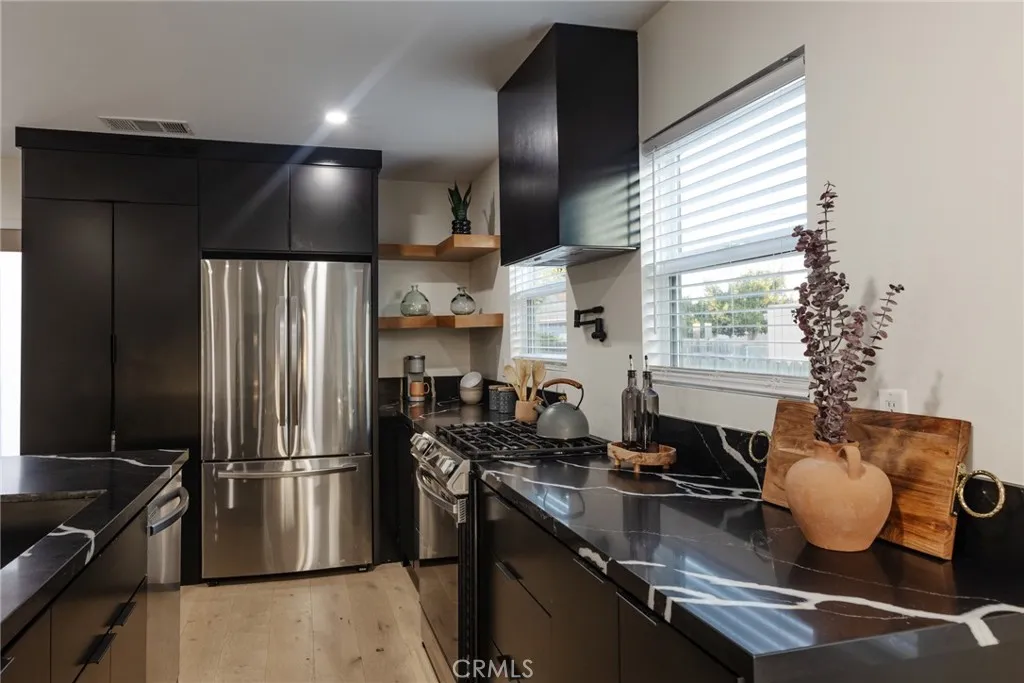 Welcome home to this Exquisite Spanish Colonial revival. Conscious of the backstory behind this 1924 original Spanish style home, financial savings was not taken into consideration to guarantee that this residence relics a landmark in this trendy and well stablished vicinity. While preserving is original character, this home was brought down to the studs to ensure that everything was replaced and rebuilt with new building code guidelines, ALL DONE WITH LA APPROVED CITY PERMITS. I like to this the "smart home." This home is equipped with high-speed internet wired connections throughout, is prewired for cameras, interior-exterior speaker system AND EV charging station suitable for all tech enthusiasts. The Elegant French white oak engineered flooring greets you as walk into your dream home. The living room is drenched in sunshine with an oversized picture window that allows for lots of natural light showcasing every single detail of this beauty. WOW! Original hand-made cement tiles in the restrooms are the stars of the show. The open concept from living room and dining room to the kitchen area is every home owners dream. French doors from your primary suite and lead you out to enjoy a freshly brewed cup coffee in a thoughtful and generous sized deck. Enjoy the Fall season in a backyard decorated with drought resistant vegetation transporting you to a Joshua Tree environment. This property is equipped with new central HVAC, electrical, plumbing, roof, windows, driveway, and security gates. Putting aside all the beautiful features this estate has to offer, 3rd is located in a d