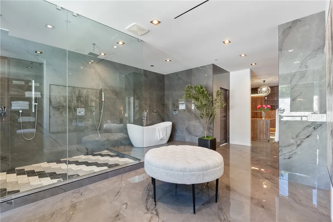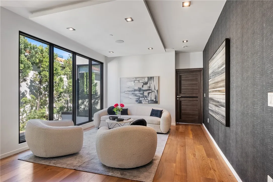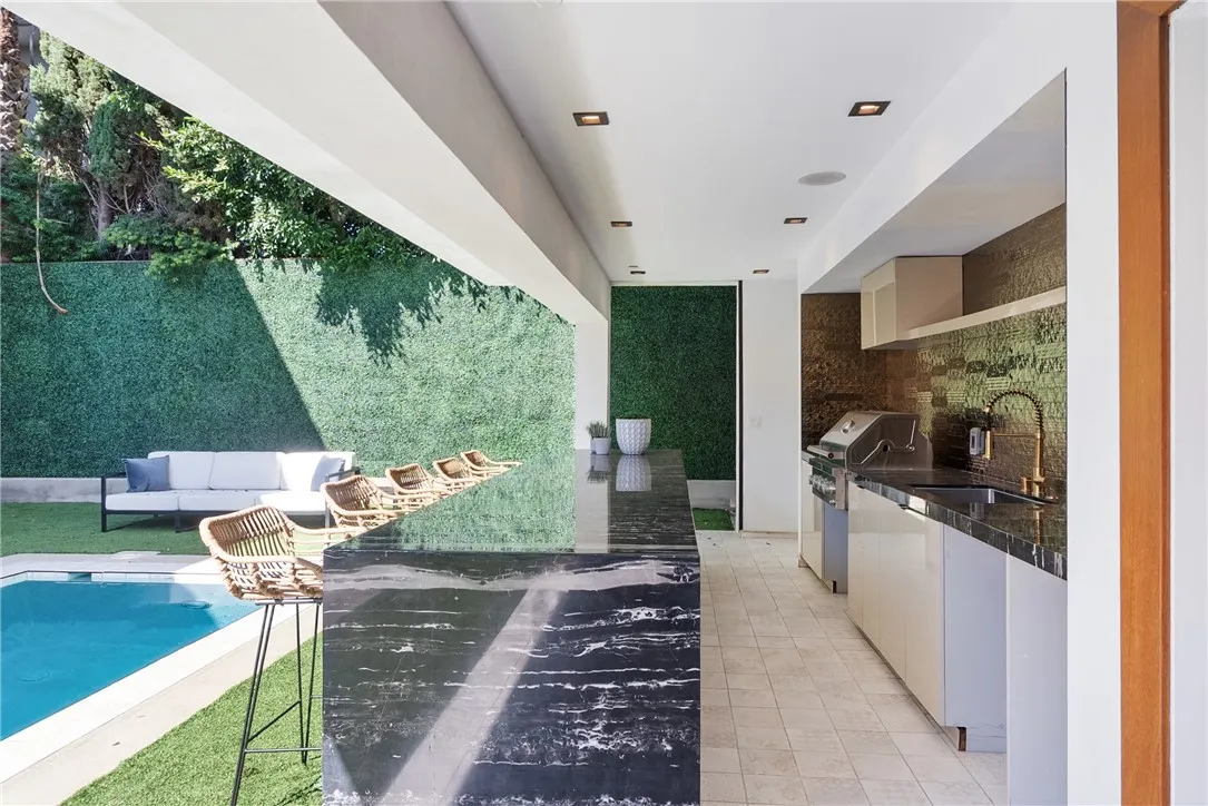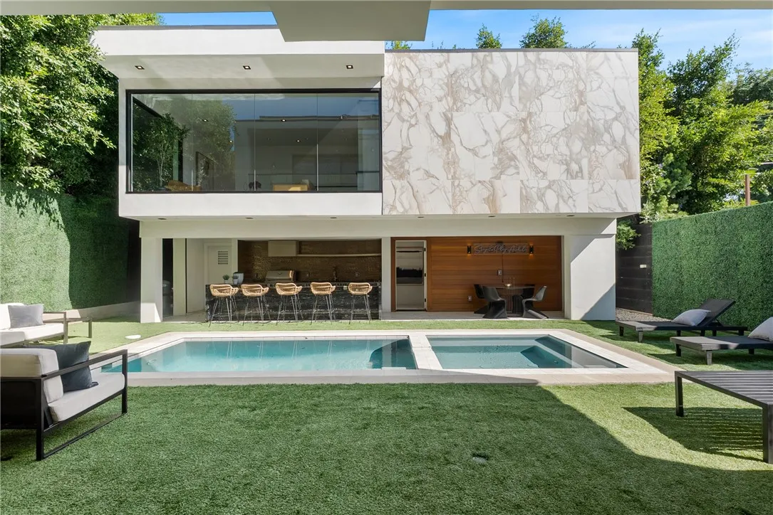 2021 Captivating Contemporary 5 Bedroom, 6 Bathroom with detached ADU in the heart of Hollywoods most sought-after Stylish Sycamore District. This matchless, meticulous, modern marvel offers approximately 4862sf livable area on a privately gated 7425sf lot with sparkling pool, spa, out-door kitchen designed for lavish entertainment and enchanting delights. Luxurious Los Angeles architecture seamlessly marries indoor and outdoor spaces with light airy open floor plan, soaring high ceilings, expansive floor-to-ceiling glass sliders, sun-bathed walls, floating staircase and two-story dramatic entrance. Sumptuous comfort, relaxation and tranquility permeate all sleeping quarters including 4 en-suites. Expansive primary bedroom retreat features a beautiful fireplace, oversized spa-like soaking tub and shower and that enormous closet surpassing your wildest dreams. A full en-suite bedroom downstairs is perfect for home-office or guests. Sophisticated formal living room, elegant dining room with deluxe wine facility and state-of-the-art gourmet kitchen outfitted with Miele appliances all designed with distinction for today, tomorrow and beyond. Other top amenities include high-tech media screening home theater, an upstairs landing lounge, engineered white oak wood floors, quartzite countertop, marble finishes, multiple patios and terraces, 2-car attached garage with direct access, laundry room upstairs, tankless water heater, central air-conditioning and heating. Walk to EVERYTHING coolest cafes, top-rated world class fine dining, cutting-edge art galleries, luxurious shopping, f