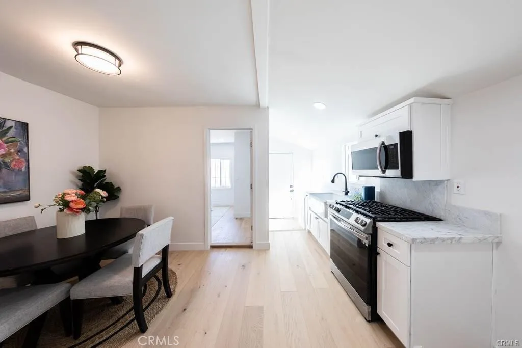 TURN-KEY DUPLEX | FULLY REMODELED | INCOME + FLEXIBILITY. Welcome to this beautifully renovated duplex offering the perfect opportunity for both owner-users and investors. Whether youre looking to live in the 2 bed unit and rent the 1 bedroom unit, or maximize rental income, this property delivers versatility and strong upside. The front unit features 2 bedrooms and 2 bathrooms (approx. 777 sqft), designed with an open and inviting layout filled with natural light. The rear unit offers 1 bedroom and 1 bathroom (approx. 559 sqft), ideal for additional income, extended family, or a private workspace. Both units have been thoughtfully upgraded with modern finishes throughout, including new interior and exterior doors, updated lighting fixtures, and stylish wood flooring that creates a warm and cohesive feel. The kitchens have been remodeled with white shaker cabinets, marble countertops and backsplash, farmhouse sinks, open wood shelving, and brand-new stainless steel appliances including stove, dishwasher, and microwaveperfect for everyday living and entertaining. Bathrooms have been tastefully redesigned with honed marble tile flooring, upgraded Delta fixtures, and contemporary wood-acrylic vanities, offering a clean and modern aesthetic. The property is fully enclosed with a wood fence, providing added privacy. Turn-key condition, move-in ready, and positioned for strong rental potential. A must-see opportunity for investors and owner-occupants alike. Property is occupied at the moment, and it will be deliver vacant.