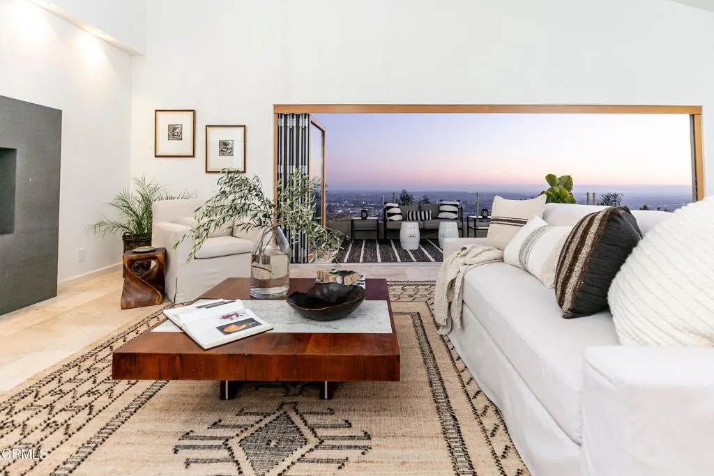 Dramatic architectural home with pool designed by noted architect Barton C. Phelps, FAIA, 1981. Located in historic Laurel Canyon, this unique contemporary was built for award-winning film editor Lynzee Klingman and offers breathtaking, unobstructed views of the ocean, downtown Los Angeles and the surrounding hills. Sited on a wide, flat parcel consisting of 3 lots, the home invites both relaxation and entertainment. As you enter, folding doors of glass merge interior and exterior spaces, extending sight lines and allowing for natural light to flood the interior. The contemporary layout features a cozy living area with fireplace, perfect for intimate gatherings, while the dining area sets the stage for elegant dinner parties. The open gourmet kitchen is equipped with high-end stainless steel appliances and modern designer touches, catering to culinary enthusiasts. Step outside to your private oasis, complete with a heated pool and spa that overlook the stunning LA Basin, and a wrap-around sundeck, ideal for hosting outdoor dinners under the stars. The great room, kitchen, primary suite, secondary suite, pool, and patio, all enjoy spectacular jetliner views. Highlights: *3 BR, 2.5 BA. *2 BR suites with views. *3rd BR with fireplace currently used as a den/library. *New roof 2024 with warranty. *New universal EV charger; both Tesla and non-Tesla EV capable with built in universal adaptor & 40 amp power level. *Pool equipment recently refurbished + Wifi Controlled. *LPG back-up generator system. *Attached two-car carport that can fit additional cars *Security cameras *Dedicate