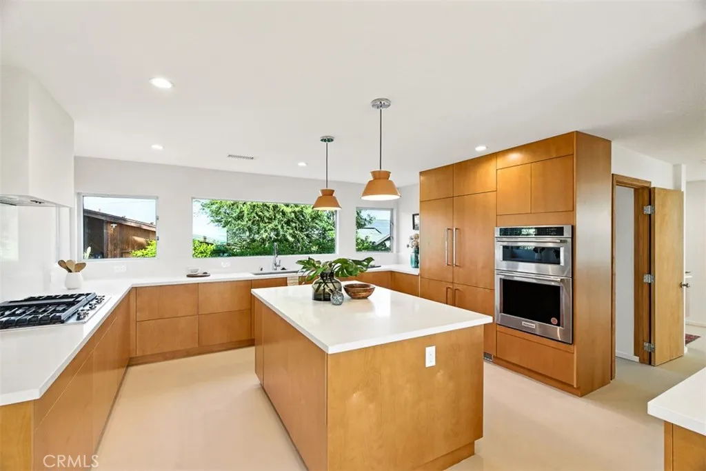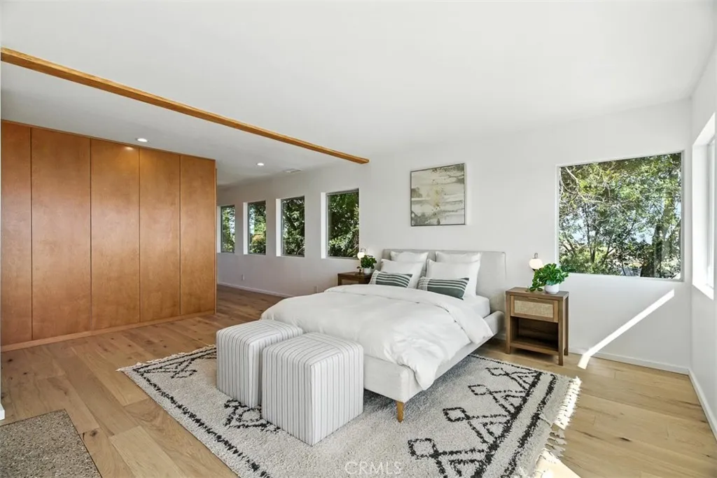 Architectural Mid-Century Compound with Panoramic DTLA Views Set high in the coveted hills of Mount Washington, this expansive 6-bedroom, 7-bathroom estate seamlessly fuses mid-century pedigree with elevated contemporary living. Originally designed by iconic architect Raphael Soriano, the 3,360 sq ft residence has been reimagined with sophisticated finishes that honor its architectural legacy while embracing the comforts of today. Walls of glass flood the main residence with natural light and offer uninterrupted views of Downtown Los Angeles from nearly every room. The entry level is anchored by polished ceramic concrete floors, an open-concept living and dining area, and a chefs kitchen outfitted with sleek birch cabinetry and premium stainless steel appliancesdesigned for both style and functionality. Upstairs, four serene bedrooms offer peaceful retreats, including a luxurious primary suite with floor-to-ceiling closets, a private balcony, and a spa-inspired en suite wrapped in elegant tile. On the lower level, a fully self-contained suite with one bedroom, two bathrooms, a kitchenette, and its own living area opens directly to a wraparound view deckideal for guests, extended family, or creative workspaces. A detached three-car garage sits above a 600 sq ft bonus unit, complete with its own bedroom and flexible layoutperfect for a studio, rental income, or additional guest quarters. Designed for seamless indoor-outdoor living, the property includes multiple view balconies, sprawling decks, and a flat, terraced side yardcreating a dynamic setting for entertaining, loungin