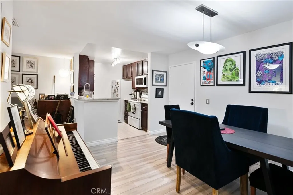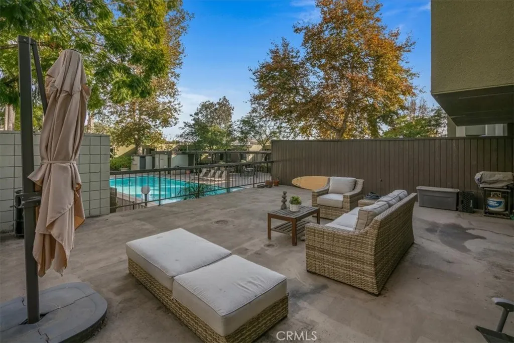 Welcome to Temple Terrace, a modern oasis in the heart of Los Angeles. This first floor home offers a rare opportunity to purchase a unit with a vast private patio that provides an incredible outdoor living space! Overlooking the pool, this feels like resort living. This stylish 2-bedroom, 1-bathroom residence also offers a spacious and comfortable living space, perfect for those seeking a blend of urban convenience and serene living. Step inside to discover a thoughtfully designed interior featuring a remodeled kitchen with a sleek breakfast bar, ideal for casual dining and entertaining. The open layout seamlessly connects the living area, creating a welcoming atmosphere for relaxation and gatherings. Enjoy the convenience of a washer and dryer in the unit and Central Heat/AC. Residents will appreciate the common outdoor space, including pool and spa, perfect for enjoying the California sunshine, and the convenience of an elevator for easy access. Parking is a breeze with 2 assigned garage parking spaces with EV charging available.
