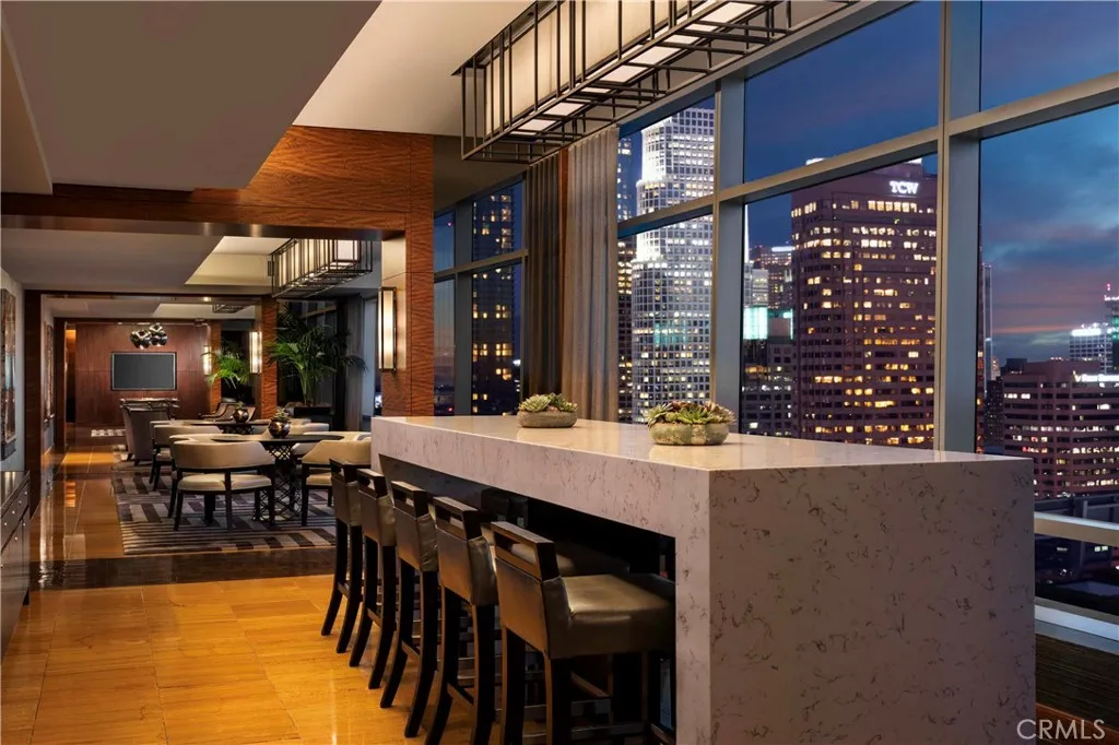 Soar above Downtown Los Angeles in this 46th-floor corner residence at The Ritz-Carlton Residences, L.A. LIVE. This approx. 1,990 sq.ft. 2 bed, 2.5 bath home features floor-to-ceiling windows, an open-concept living/dining area, and breathtaking panoramic views of the city skyline, mountains, sunsets, crypto arena and iconic landmarks. The sleek chefs kitchen offers European-style cabinetry and top-tier appliances. Both bedrooms are generous en-suite suites, complemented by a stylish powder room and in-unit laundry. Enjoy true five-star living with 24-hour concierge, valet, residents lounge with daily breakfast, rooftop pool, fitness center, screening room, and access to Ritz-Carlton spa and hotel services. All in the heart of L.A. LIVE, moments from world-class dining, entertainment, and Crypto.com Arena.