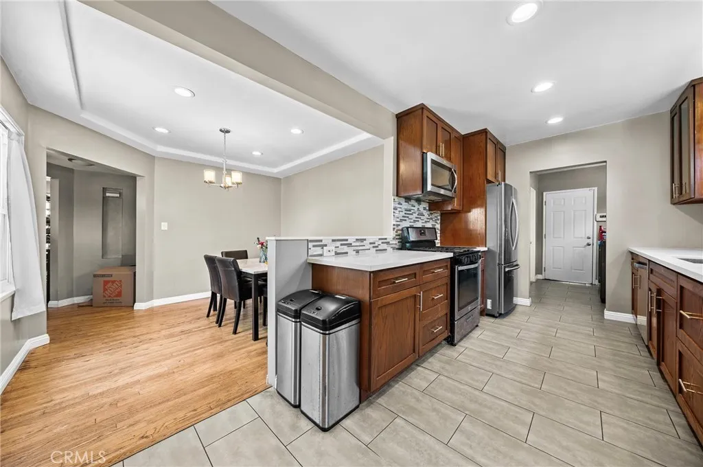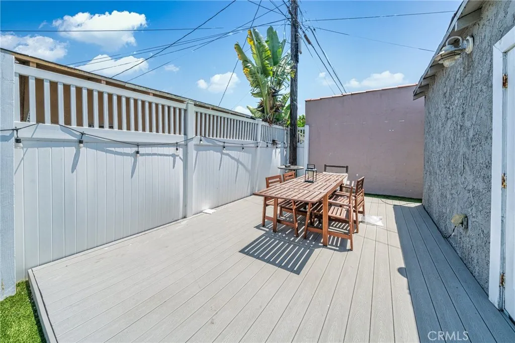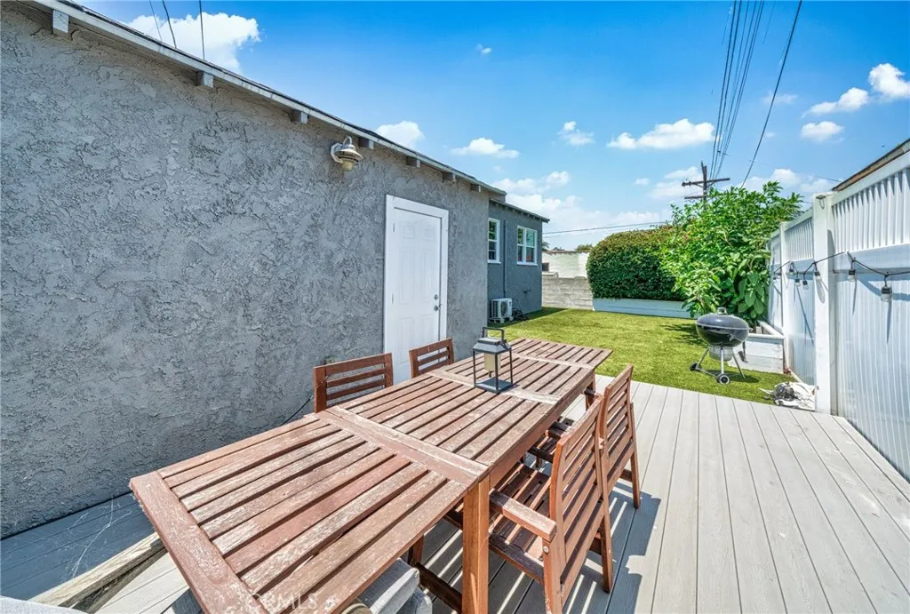 Welcome to this beautifully updated home, nestled in a highly sought-after Inglewood adjacent neighborhood. This spacious 4 bedroom, 2 bathroom home boasts 2030 sf of living space. From the moment you enter, the bright and airy living room with its nice hardwood floors welcomes you, flowing effortlessly into the open concept kitchen and dining area. The modern kitchen is a standout, featuring quartz countertops, custom oak cabinetry and a stylish glass tile backsplash that adds a contemporary touch. The master suite offering double closets, and an abundance of natural light from the large windows. The luxurious bathroom showcases a custom oak vanity, enhancing the home's upscale feel. Enjoy a private, low maintenance yard with artificial grass and a trex deck, providing the perfect spot for entertaining or simply relaxing. The detached garage offers exciting potential for an ADU or additional storage. Located just minutes from the new Sofi LA Rams stadium, this home is ideal for those seeking both comfort and convenience in an up and coming neighborhood.