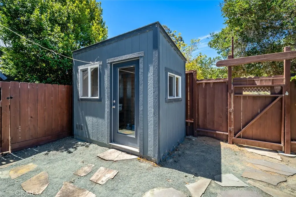 Situated on over 1.4 lush acres in the temperate coastal climate of Los Osos, this tri-level 2,458-square-foot home showcases sweeping views of rolling hills from Morro Bay to San Luis Obispo. Thoughtfully designed to capture natural light and frame its stunning surroundings, the home blends character, functionality, and charm. Entering on the second level, a double-door entry opens into a bright foyer with picture windows and sliding panels that invite natural light and cross-breezes. The adjacent laundry room includes a folding counter, generous storage, and a tiled entry with mudroom potential, leading directly to a spacious two-car garage. A fourth bedroom completes this level. The third level offers a formal living and dining area featuring soaring wood ceilings, a decorative chandelier, and panoramic vistas. The spacious eat-in kitchen continues the spectacular western views and is equipped with a gas stove, vent hood, microwave, refrigerator, dishwasher, and ample cabinetry accented by beautifully tiled countertops. A coffee bar counter and pantry make this space ideal for both casual mornings and entertaining. A cozy family room down the hall features a fireplace, large view windows, and French doors that open onto a private balconyperfect for morning yoga or evening relaxation. A half bath completes this level. The first level is home to the serene primary suite, offering direct backyard access, a walk-in closet, and a luxurious ensuite bath with custom tilework and a walk-in shower. Two additional bedrooms and a full bathroom complete the lower floor. Outdoors, en