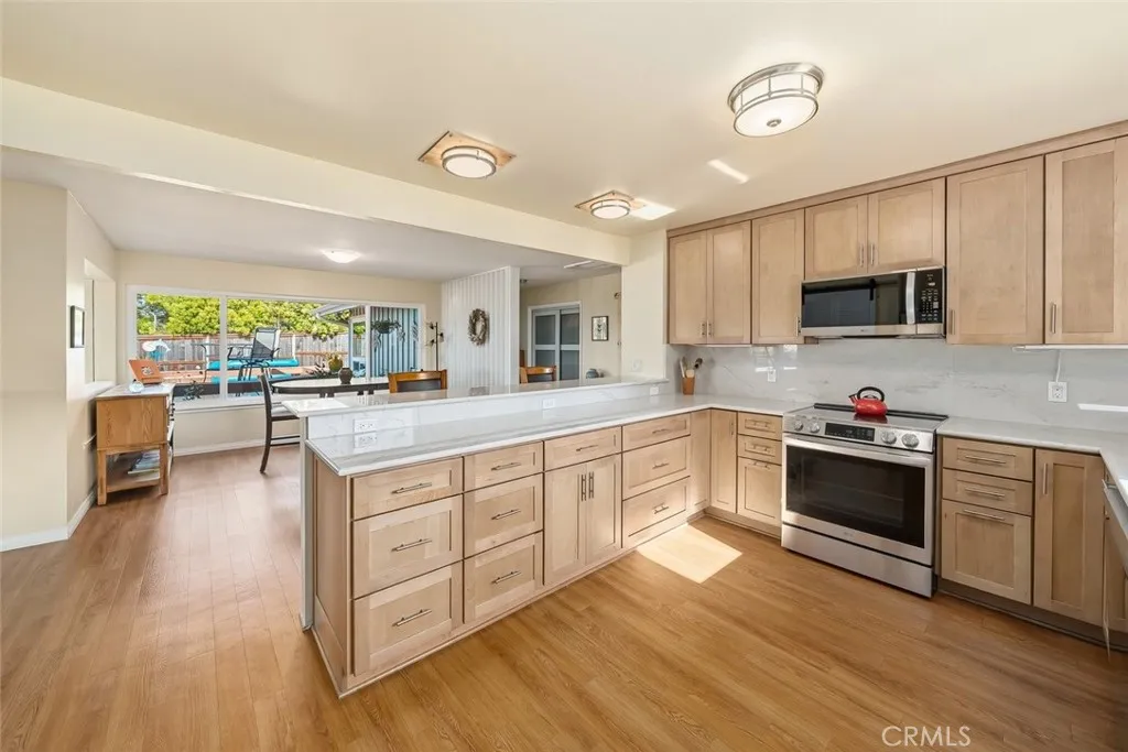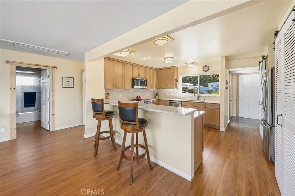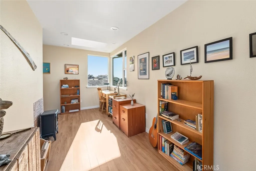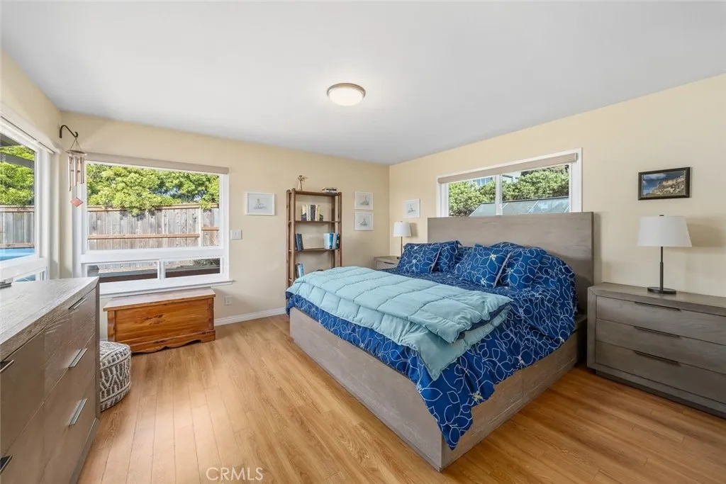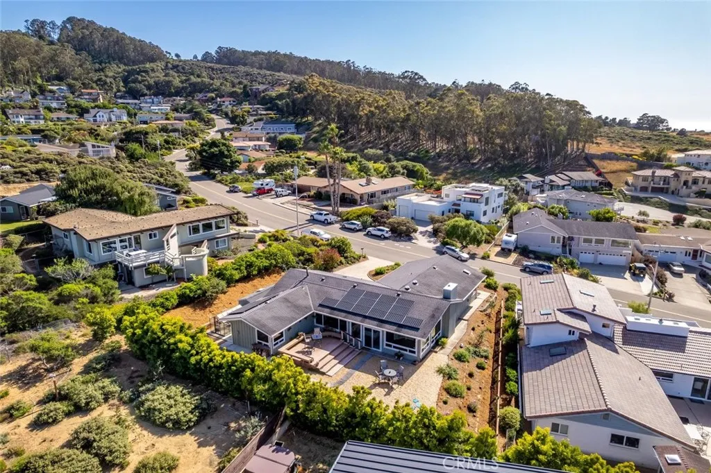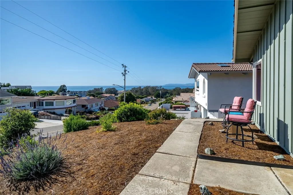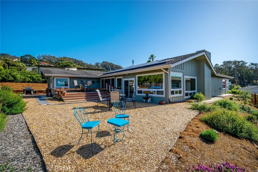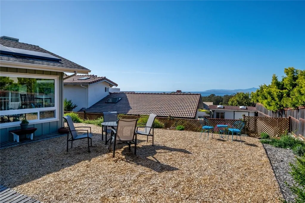 Improved, upgraded, and ready for its next owner, this beautifully reimagined Cabrillo Estates home blends upscale finishes with bright, dynamic living spaces and breathtaking coastal views. Thoughtfully modernized throughout, the home features an efficient all-electric design (with gas water heater), an owned Tesla solar system, and an electric heat pump with four split units for year-round comfort. Inside, natural light takes center stage. The living room is warm and inviting, enhanced by two solar tubes and seamless flow into an adjacent interior view roomperfect for soaking in sweeping vistas of Los Osos, Morro Rock, and Estero Bay. Hard surface flooring runs throughout, complemented by upgraded LED lighting and fresh interior and exterior paint. The fully remodeled kitchen shines with quartzite countertops, new appliances, abundant cabinetry, and a convenient breakfast counter, all opening to a bright dining area wrapped in windows. Both bathrooms have been completely renovated with stylish, modern finishes. The spacious primary suite is filled with natural light and offers dual closets leading to a private ensuite bath. A generously sized second bedroom (currently used as a TV room) and a well-appointed guest bath provide comfort and flexibility. An ocean-view office adds even more functionality for remote work or creative pursuits. Outdoor living is just as impressive, with a spacious backyard designed for entertaining and relaxation, complete with multiple seating areas, a patio ideal for BBQs, drought-tolerant landscaping, and stunning coastal scenery. Additional h