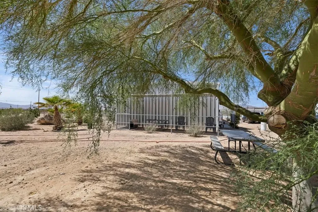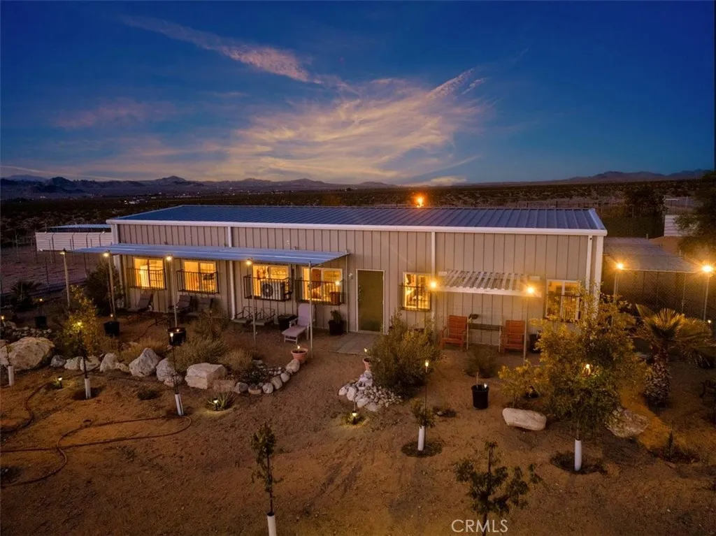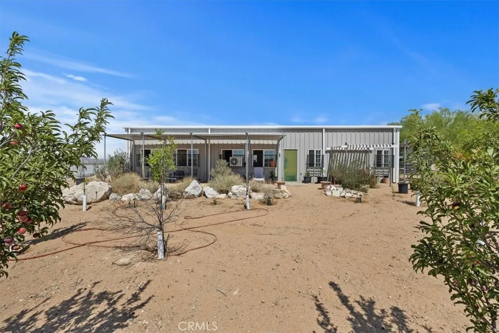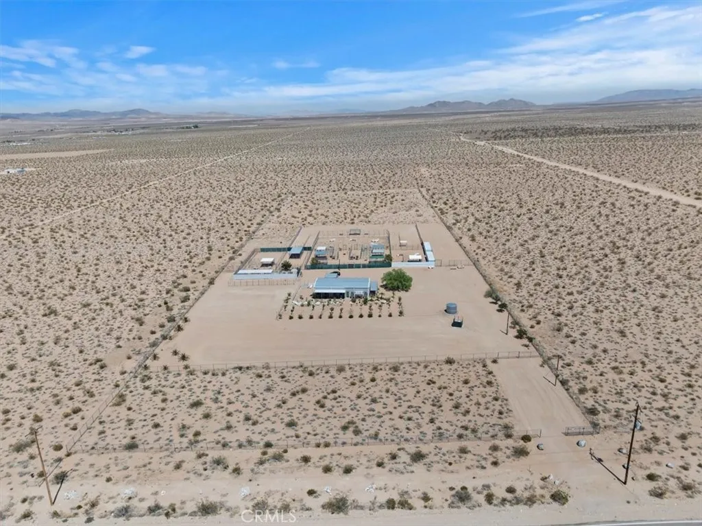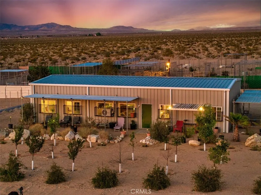 Imagine this!! A Fabulous Estate Property Featuring a Wildlife Sanctuary with Lifetime Commercial use permit, Equestrian Ranch, Multi-Purpose use, Multi Family Compound. The Possibilities Are Endless! A rare opportunity to own a truly one-of-a-kind property located in the heart of the Mojave Desert. This unique property is nestled on a quiet paved street and offers 37+ acres of sweeping peaceful mountain views, extraordinary desert landscapes, breathtaking sunsets and approximately 335 days of clear beautiful blue skies in the popular High Desert Community. Additional adjoining acreage is available for purchase if desired. This residence is a light filled, airy, open concept with soaring 16 ft ceilings, all steel construction, double pane windows, R38 insulation throughout and all steel roof making this home extremely energy efficient and fire retardant. Construction features a massive 6 concrete slab, steel doors and covered front and side patios to view the mountains and desert valley below. The property is completely fenced, has a 600 ft. well, water tank storage, covered parking, and a delightful orchard with multiple varieties of fruit trees including almond, apple, apricot, jujube, pear, peach, plum and pomegranate. The interior boasts an open floor plan with the kitchen and living space complimenting the center of the home and two huge primary en-suite bedrooms with en-suite bathrooms creating a split floor plan. The large, oversized utility room has storage for washer, dryer, freezers, and more All appliances are included! Property has internet and security cameras