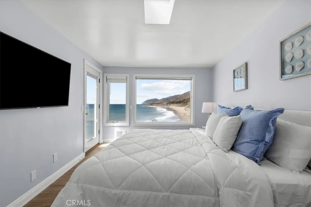 Welcome to the gem of Malibu Shores! This breathtaking oceanfront, corner unit in Malibu offers spacious four bedroomS, three bathrooms oasis and showcases the essence of coastal living. Enjoy breathtaking views from sunrise to sunset from every single room, expanding from the Channel Islands to Catalina. The open-concept living and dining areas seamlessly connect to a wraparound deck, ideal for entertaining or relaxing. The home features an updated kitchen, bathrooms, new flooring from the stairs to the second floor and AN ideal floor plan! With its south-facing orientation, the unit is bathed in natural light throughout the day and stunning sunsets in the evening. On the first floor, there is a convenient bedroom/office and full bathroom for guests. A practical sand room is located off the deck where you can store your surfboard, wet suits and everything else used to enjoy the beach. On the second floor, you'll find the primary suite that boasts a spacious balcony with stunning panoramic views, walk-in closet and a beautifully appointed bathroom. In addition, you there are two more bedrooms with a LOVELY balcony in-between where you can savor the ocean breeze. In the hallway will be a spacious bathroom with washer, dryer & storage! Steps from the front door, enjoy easy access to popular surf beaches at County Line and Buena Vista Beach. The gated community also offer a half basketball court and full pickle ball court If you have been looking for a relaxing getaway to call home, this is the one!