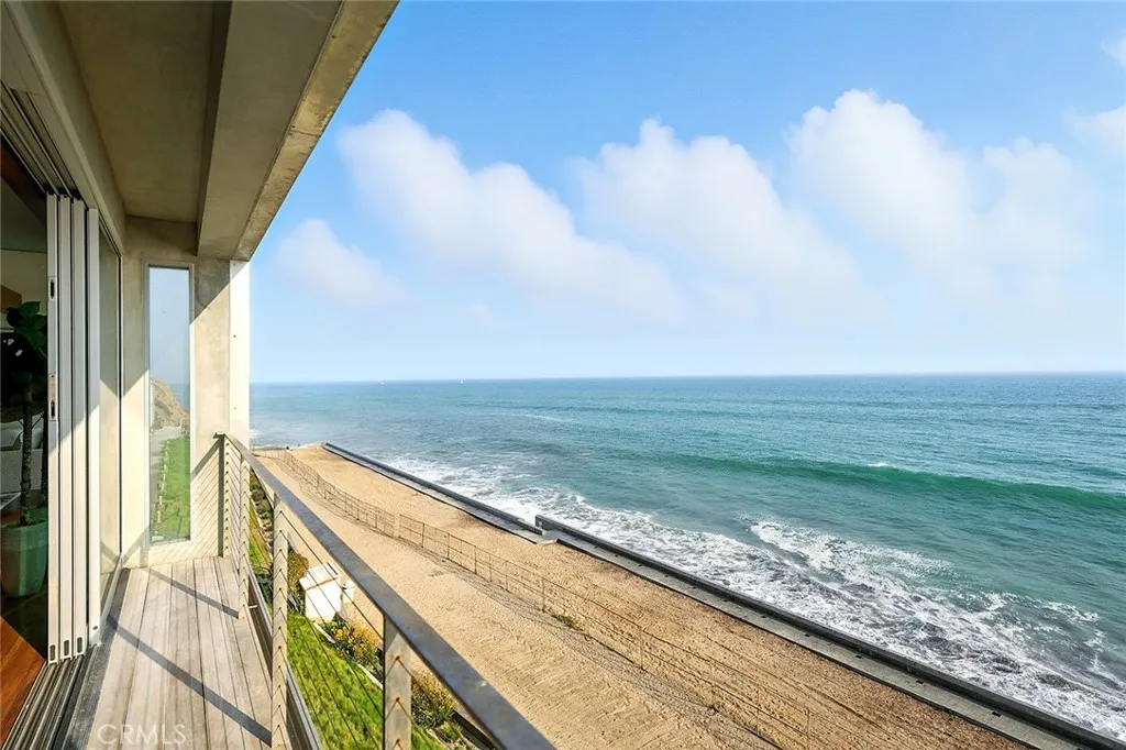 A sophisticated modern beachfront residence featuring upscale design and coastal living vibes. Nestled along a quiet stretch of coastline, this impeccably renovated two-bedroom, two-and-a-half bath beachfront property delivers unmatched coastal elegance and stands as a serene escape from the bustle of everyday life. Upper-level living area feels like floating over the ocean thanks to the expensive windows and panoramic views. Floor-to-ceiling windows frame sweeping views of the ocean, letting in golden sunlight that dances across the polished hardwood floors. With an open-concept layout, the spacious living room and kitchen flow seamlessly together, all set against a backdrop of jaw-dropping ocean views that stretch endlessly from nearly every room. Sleek, fully equipped cooks dream kitchen is beautifully designed and functional. Lower level hosts the master suite and a secondary suite with its own kitchen, easy sand access. Additional features include two-car tandem covered parking, a private laundry closet, and direct access to all the amenities of the Malibu Bay Club, including a sparkling pool, relaxing spa, and two sports courts, for an active coastal lifestyle. Perfectly located just minutes from Pepperdine University, County Line Beach, and Leo Carrillo State Park. Whether for intimate living or seaside entertaining, this Malibu gem offers a uniquely immersive coastal lifestyle. Its a place where time slows, and the ocean is your constant, calming companion.