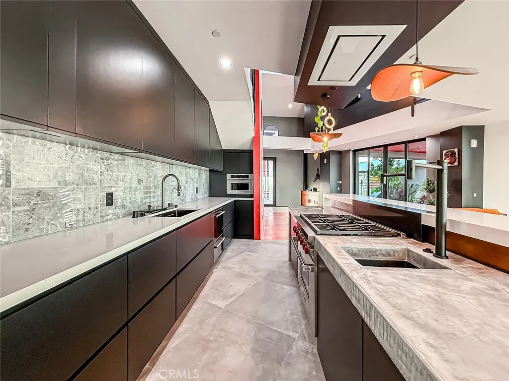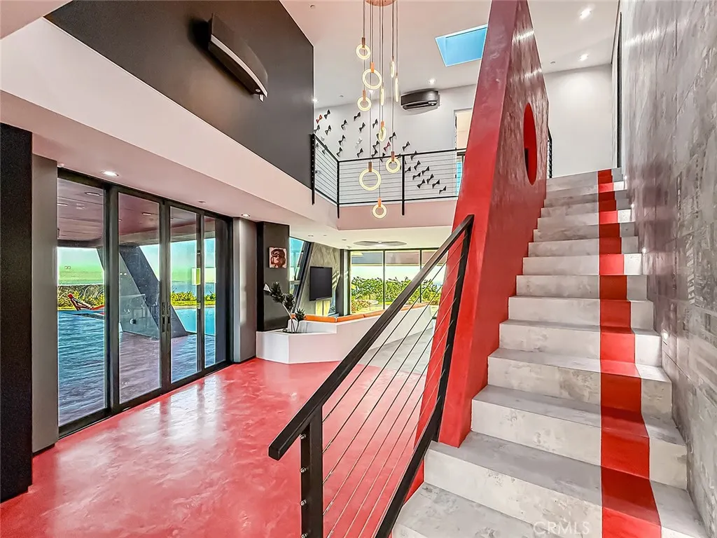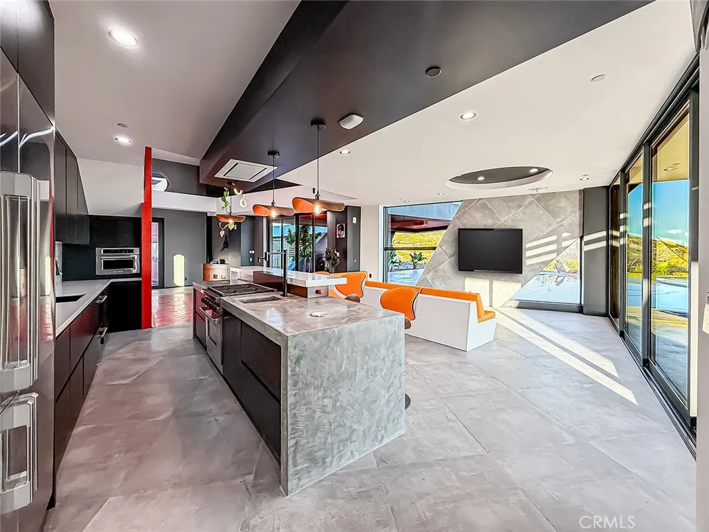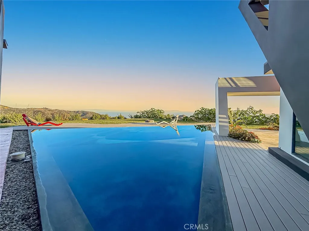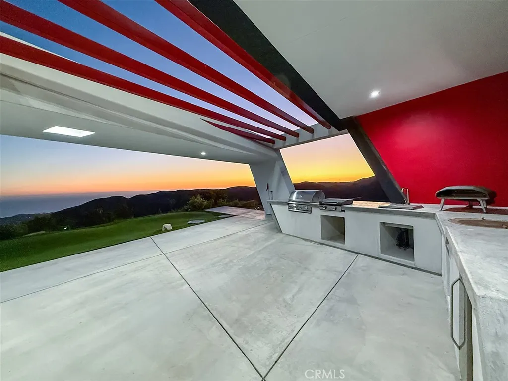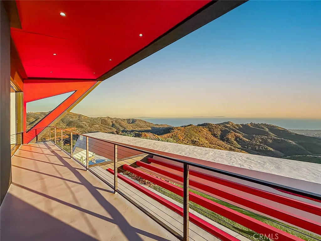 Soaring jetliners & sweeping views spanning Catalina to Santa Monica set the stage at The Aviatora striking, architecturally significant Malibu escape by renowned designer Amit Apel. Perched at the end of a private road at the top of the world, this bold, modern sanctuary draws inspiration from the grace and precision of flight. A sculptural interplay of steel, crisp architectural lines, and signature circular windows create a sense of movement and lift, giving the residence its unmistakable presence. This one-of-a-kind retreat is equipped with a state-of-the-art Smart Home system that controls lighting, security, pool, and solar systemall automated & effortlessly accessible. Through the glass entry, the home unfolds into a dramatic open-concept living space defined by custom art, rich textures, & dynamic architectural forms. Floor-to-ceiling retractable walls vanish to frame endless ocean, canyon, and skyline views, blurring the line between indoors & out. The sleek European-inspired kitchen features premium stainless steel appliances, a six-burner gas cooktop & spacious center island with a breakfast bar with custom seating. A warm yet sophisticated ambiance flows seamlessly into the dining and family areas, where bold style and comfort unite. The main level also includes a bedroom with a circular window. Ascending the stairs, 2 luxurious primary suites await. The first boasts sweeping ocean & Malibu city vistas and an Art Decoinspired bath with stunning glass-enclosed shower, soaking tub, dual sinks, & mountain views. The second primary suite mirrors the homes refined de