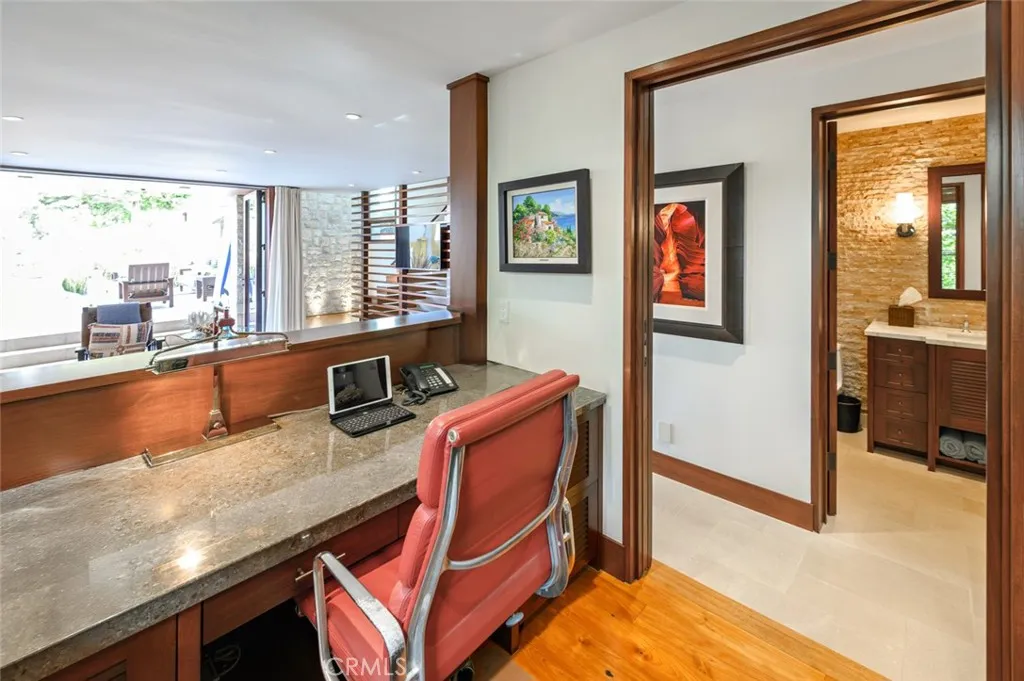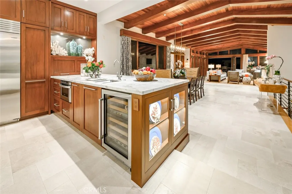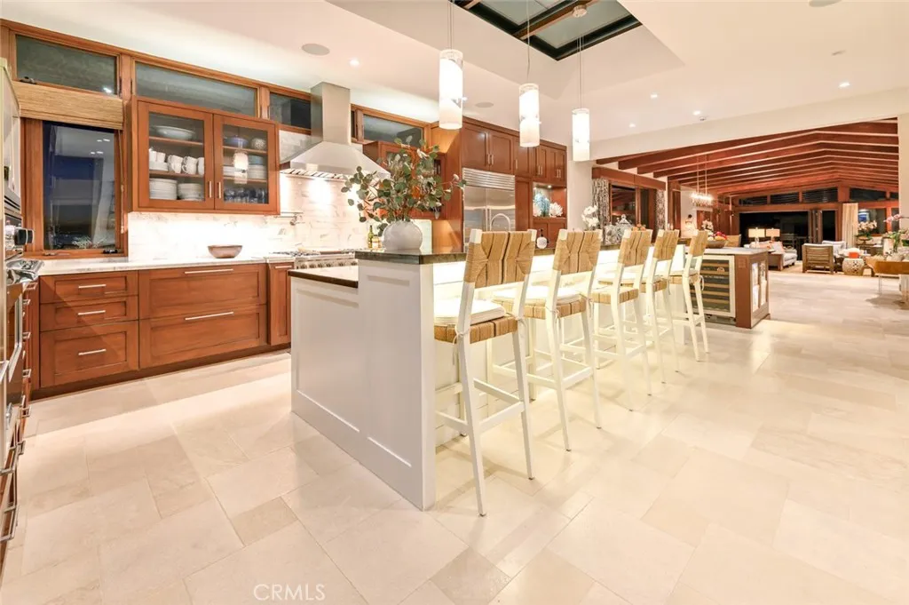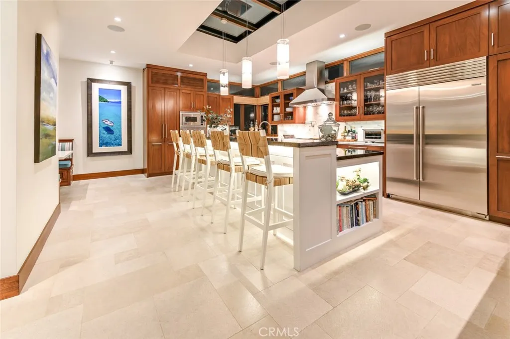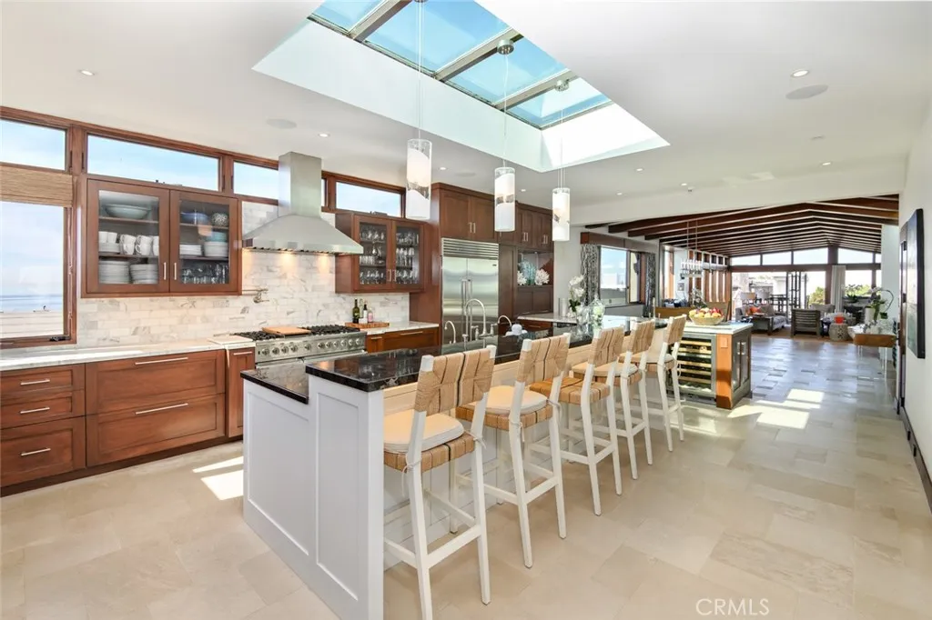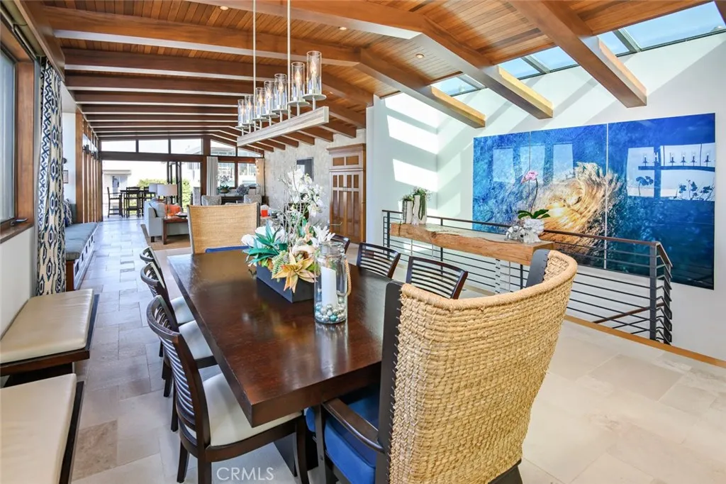 This is A RARE, Luxurious, OCEAN VIEW, Strand-adjacent CUSTOM QUALITY built home located IN THE 100-block South End Sand Section. It has been over 20 years since a home of this quality, size, and location (100 block walk street South Sand Section) has been listed on the market for purchase. This rare gem, just steps from the beach and a short stroll to the vibrant downtown, offers the perfect place for privacy and coastal living. Jon Starr Design Group designed this fabulous 5 bedroom, 7 bath home (two are 1/2 baths), office, office area, 3 living spaces, with a three-car garage and room for a 4th car outside. 5,401 sq is featured on 4 levels. There is an elevator to access all levels, making the separation desirable and the flow easy to enjoy. One of the "living spaces" could be a living space/gym or movie room. There is an extensive wine room (600+ bottles) for the wine connoisseur. (or design this room to fit your personal needs). The teak and limestone floors lend a timeless elegance to the space, while the mahogany ceilings, doors, and trim add warmth and richness. This home offers VIEWS of the OCEAN, The Manhattan Pier, and Malibu. Imagine waking up in your primary retreat, where the gentle ocean breeze greets you on your private deck. The open floor plan makes it an entertainer's dream, with a spacious dining area and a chef's kitchen featuring a walk-in pantry, oversized breakfast bar, and built-in eating nook. Your guest will be wowed by the well-appointed beach room with a wet bar. This room opens directly onto the walking street, perfect for enjoying coastal suns