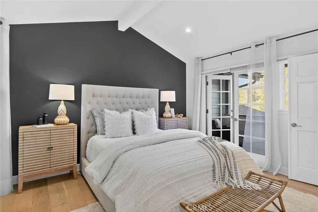 Experience resort-style living in this exquisite, turnkey Plan 6 townhome, beautifully remodeled and nestled on a peaceful cul-de-sac within the exclusive gates of Manhattan Village. This prestigious, 24-hour guard-gated community promises unparalleled security, lush parks, scenic walking paths, sparkling pools, multiple inviting spas, and impeccably landscaped grounds. Step inside to discover an expansive, sunlit living and dining spacethoughtfully designed for both relaxation and entertaining. The living room is punctuated by soaring vaulted ceilings and a classic brick fireplace, while elegant double French doors open to your own private outdoor oasis. The south-facing patio showcases upgraded, low-maintenance tile flooring and features a built-in barbecue and refrigeratorideal for effortless al fresco entertaining. The gourmet kitchen is a chefs dream, appointed with sleek marble countertops, a wrap-around breakfast bar, a step-in pantry, and sophisticated shaker cabinetry. Top-of-the-line Italian Bertazzoni appliances elevate every culinary experience. A versatile first-floor bedroom, complete with custom built-ins and a full bath, provides an ideal space for guests or a luxurious home office. Upstairs, the lavish primary suite delights with vaulted ceilings, a private balcony retreat, and a sumptuous spa-inspired bath featuring a frameless glass shower, indulgent soaking tub, and dual vanities. The generous walk-in closet offers abundant, custom storage. A spacious third bedroom with its own en-suite bath completes the second floor. Modern smart home upgradesincluding